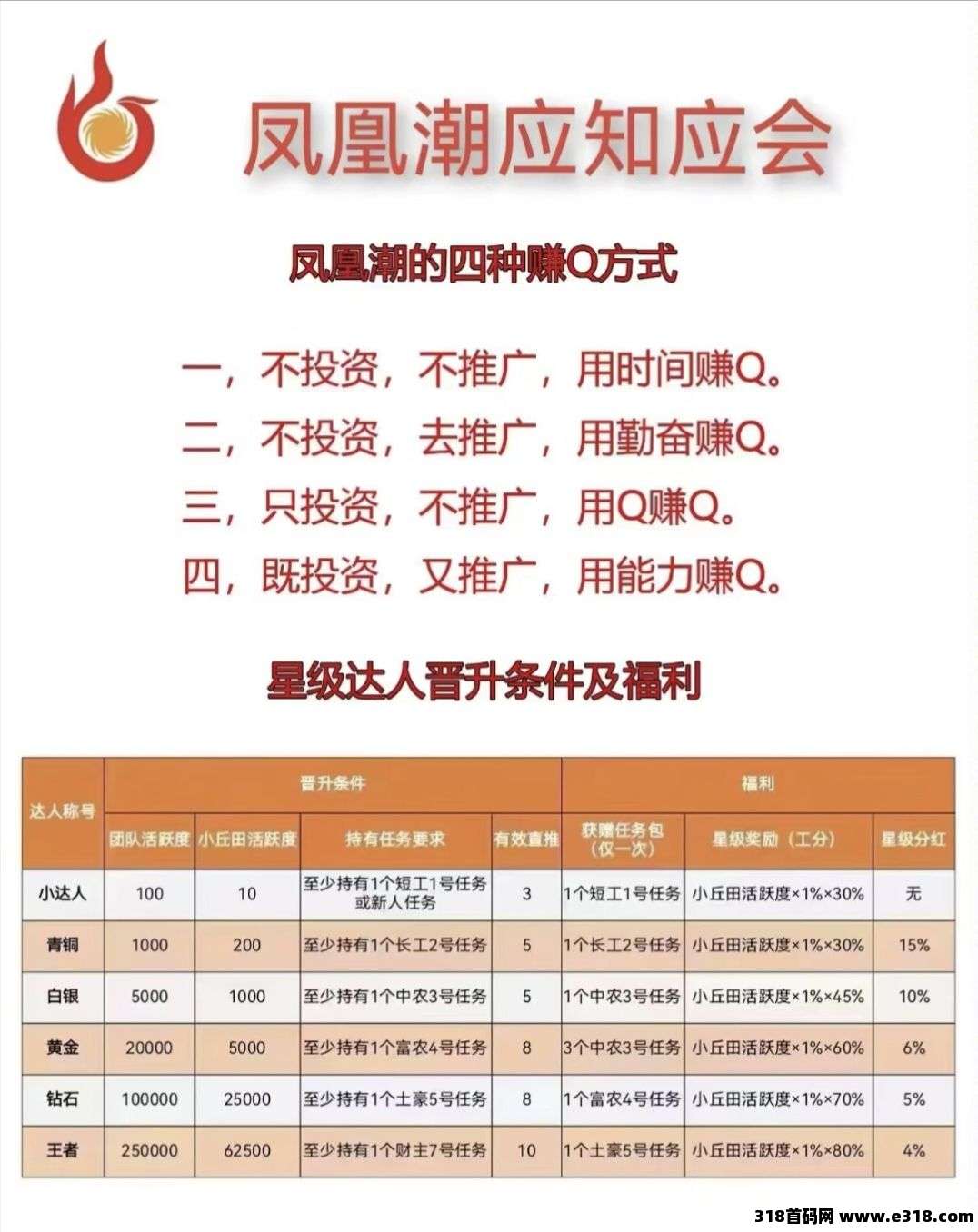 3.不推广只**,用钱去赚钱: 通过**,用资金赚取工分,适合有资金但不想参与推广的用户。