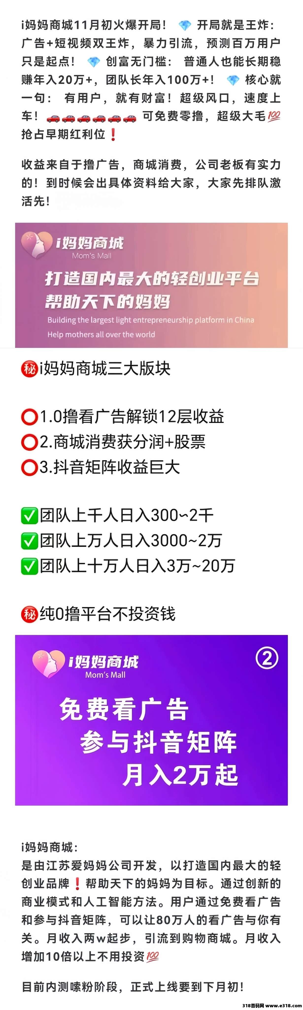 i妈妈商城:0投入赚米、全网公排滑落团队给你!
