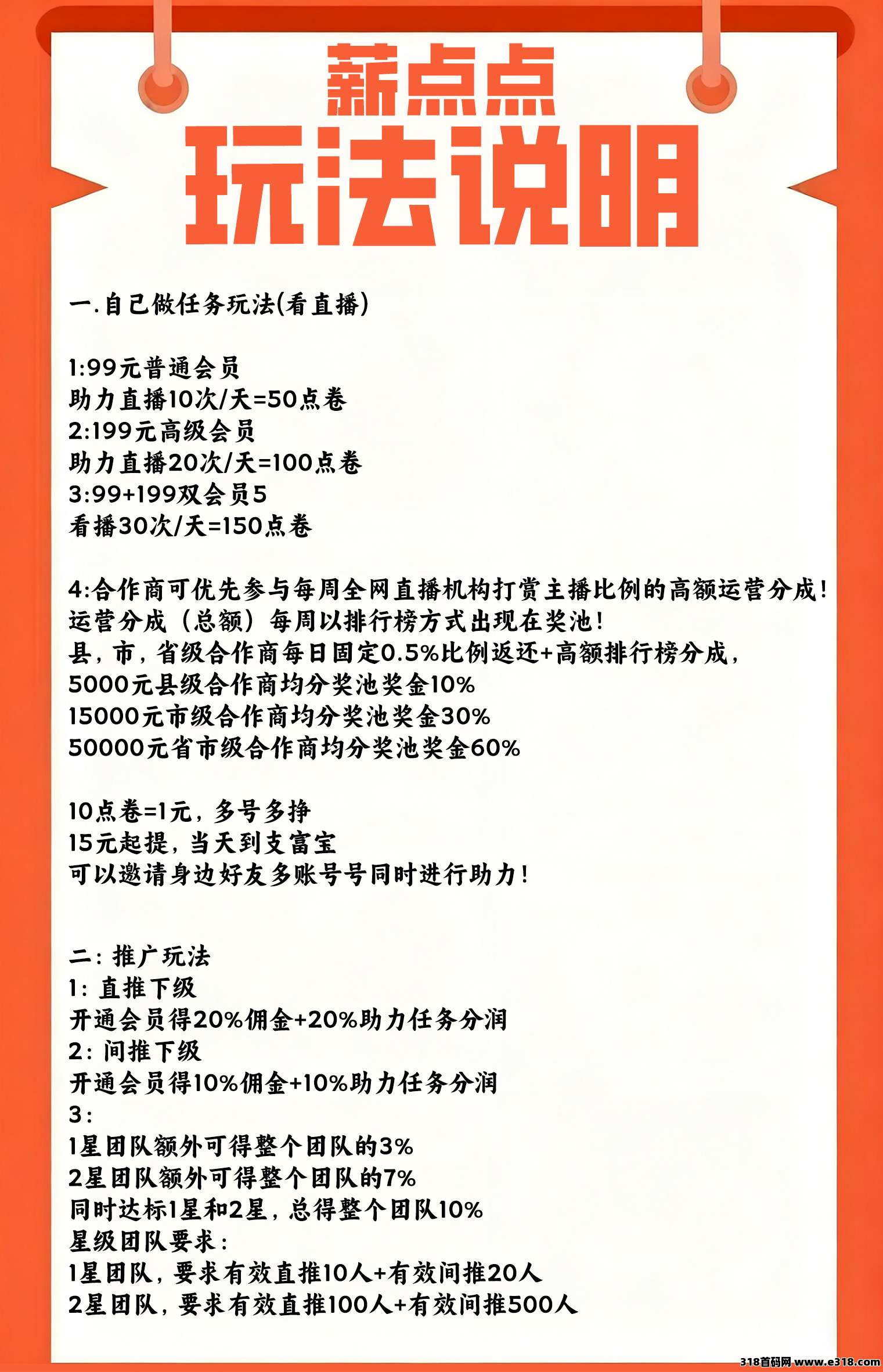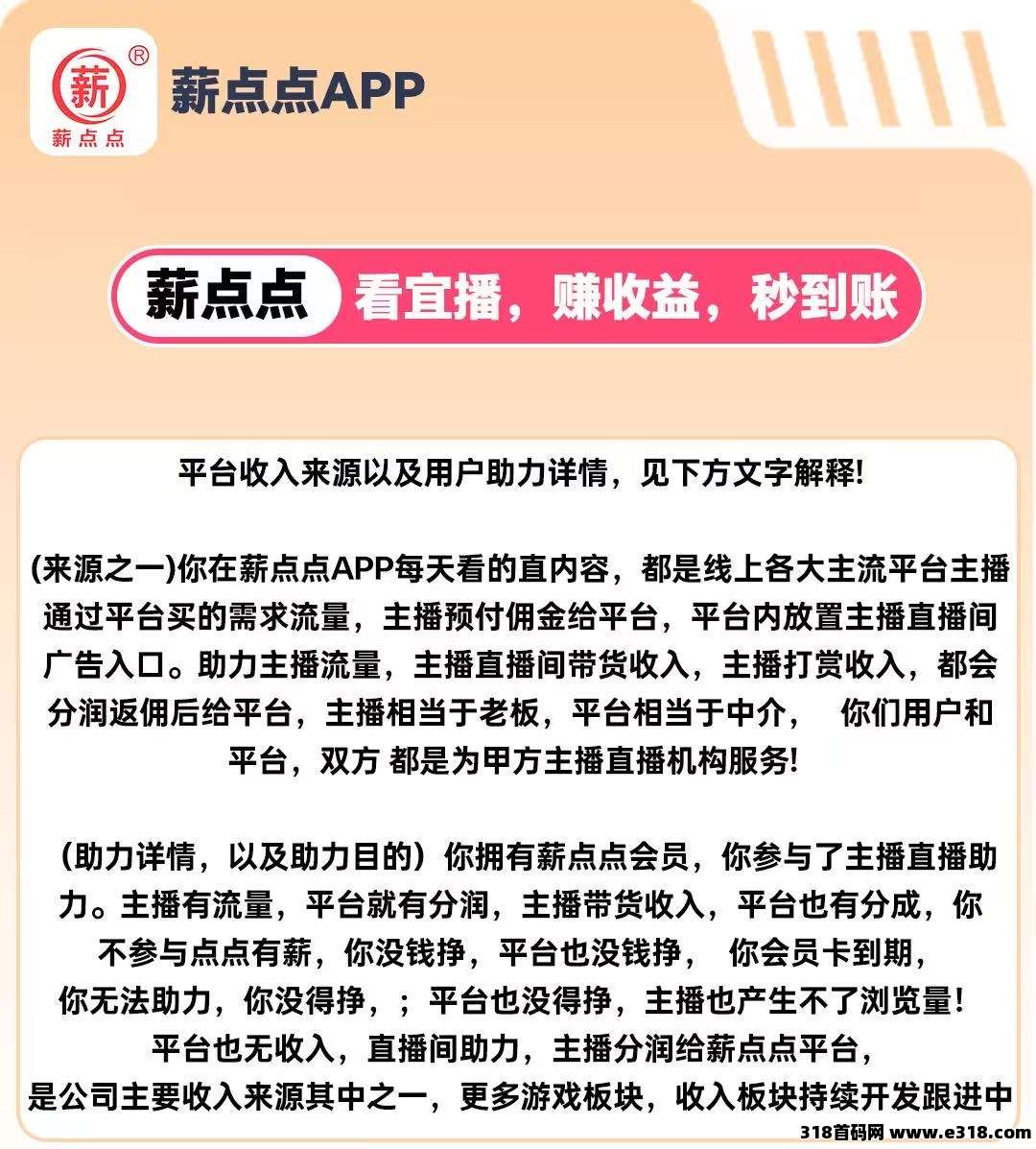 全网首发《薪点点》每天助力直播日收益15元,提现秒到500元,速度上车