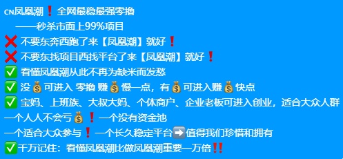 立即加入【凤凰潮】,开启你的零撸赚钱之旅! 在这里,你不仅可以享受零撸的乐趣,还能通过分享和推广,轻松赚取收益。凤凰潮,让你的财富增长不再有界限!