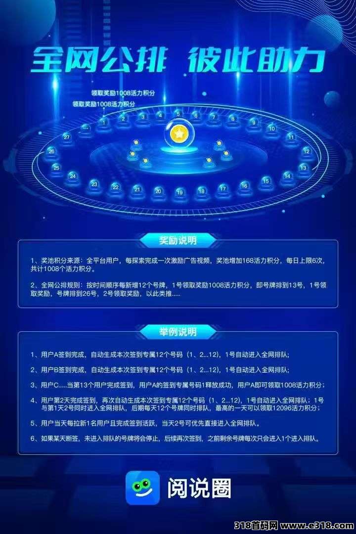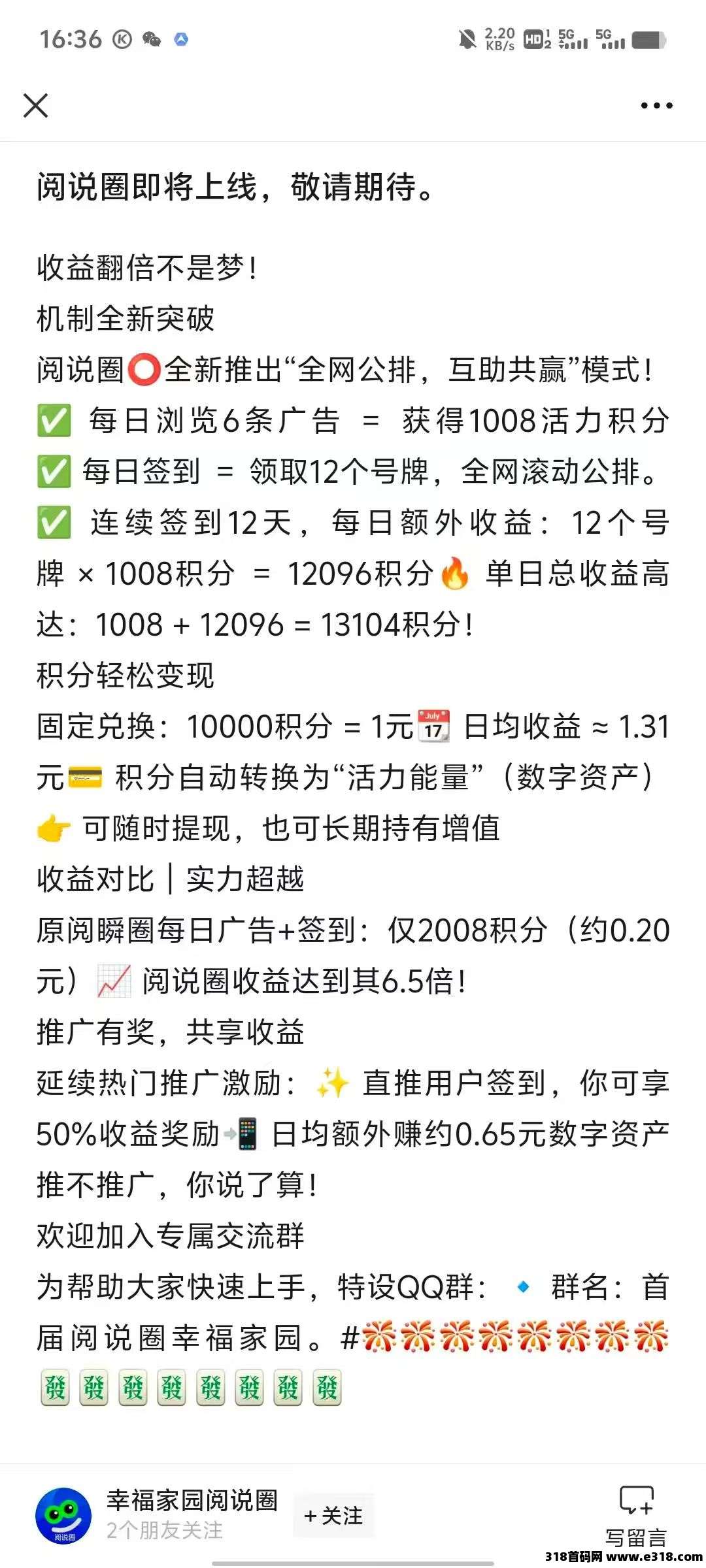 首码阅说圈app,纯0撸,10月13号完成一次内测签到即有资格参与全网公排