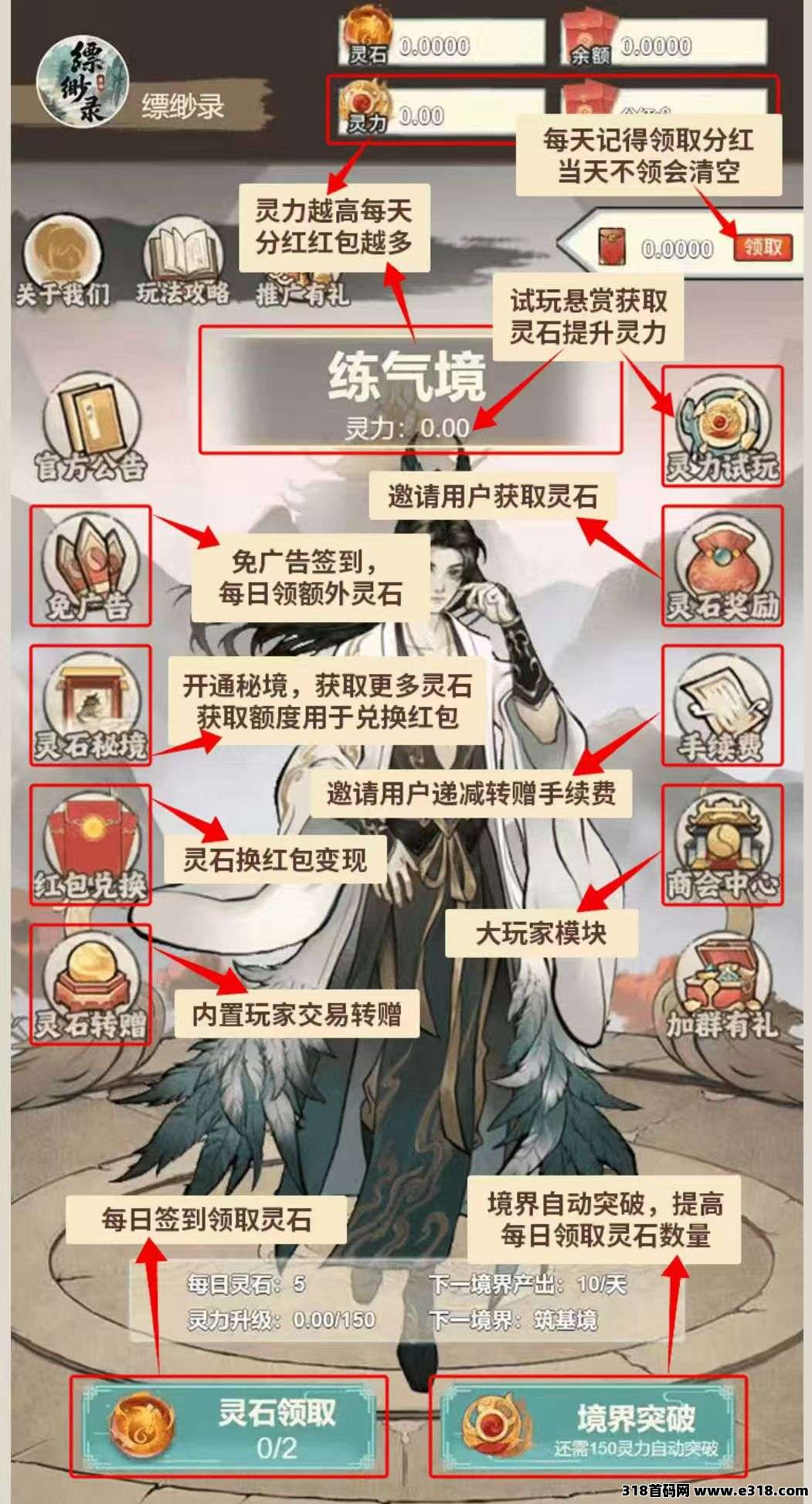 第一步:点击领取灵石,看3个广告,得5灵石