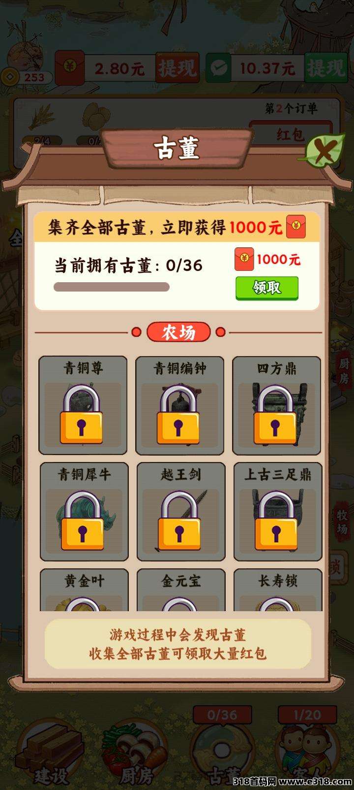 游戏内可随机掉到出各种古董碎片,收集相应的古董,可获得1000元奖励。