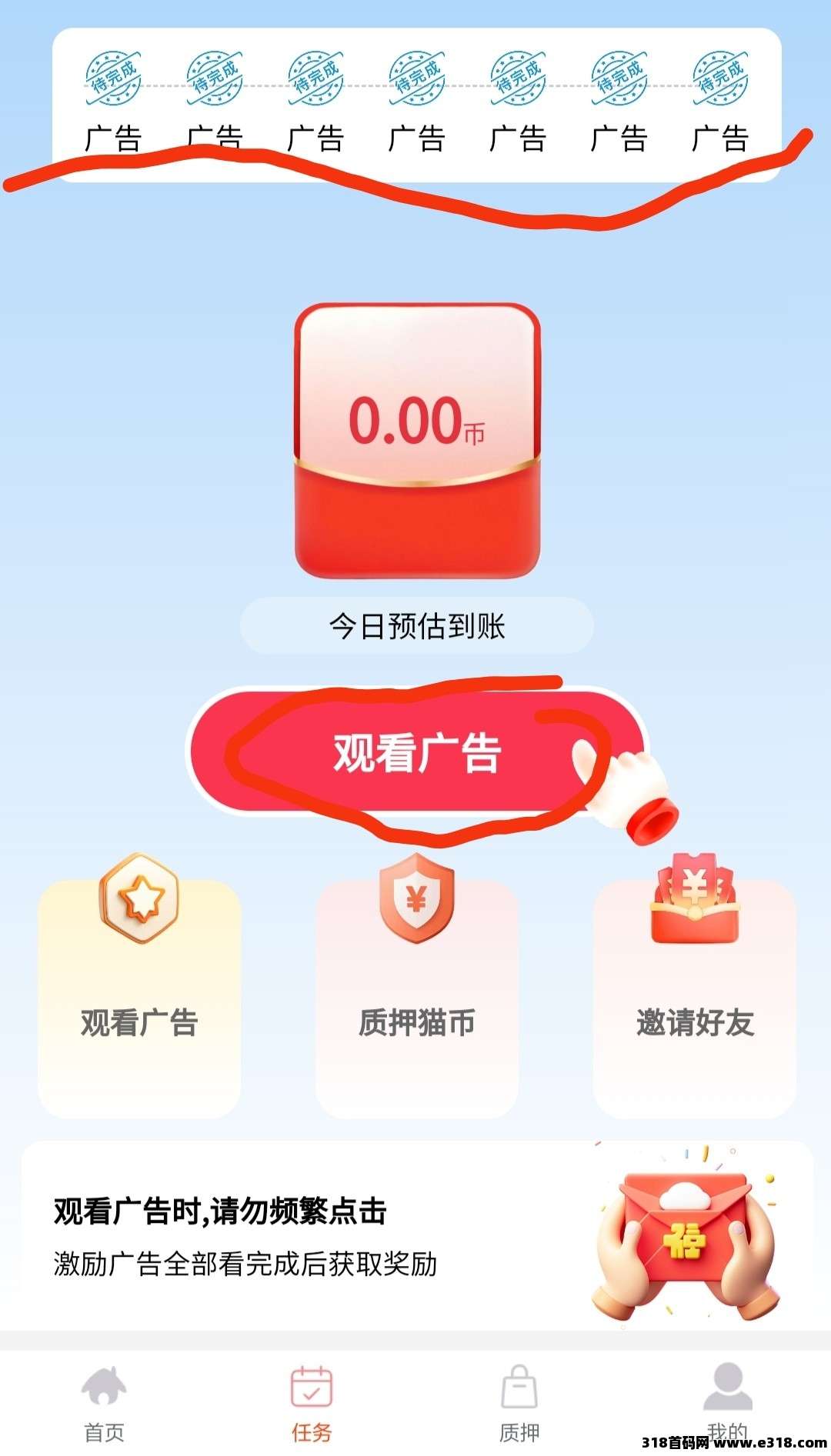 招财猫零撸,玩法多样,用户每天观看广告,签到
