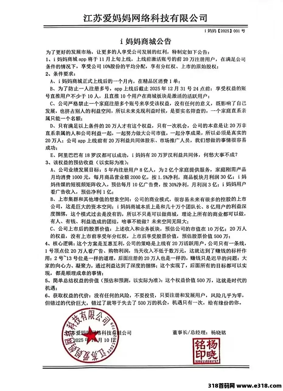 i妈妈商城即将耀世启航,10月15号启动注册引流,11月上旬APP正式上线,同时开通聊天、建群版块。
