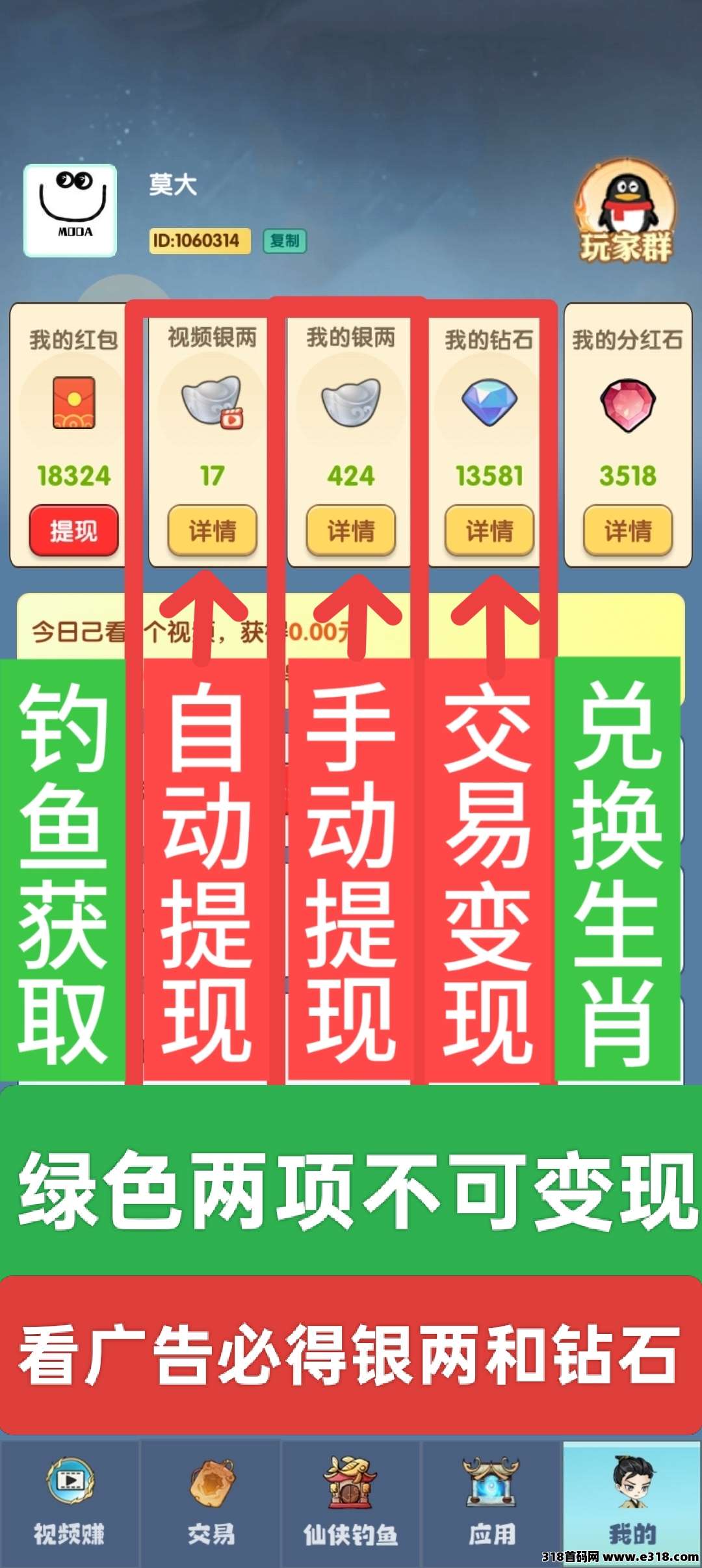 10月 15日上线的仙侠时代,每看一条广告必得银两和钻石,每满 10银两以上,支付宝立马到账,无须手动提现,