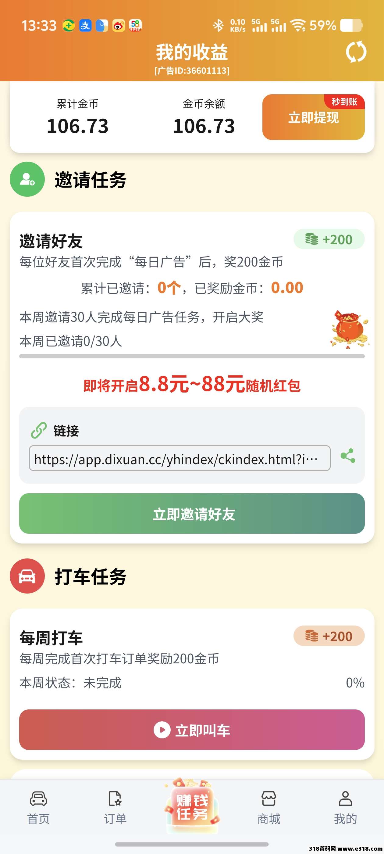 邀请好友每周助力完成每日广告奖励8.8-88不等