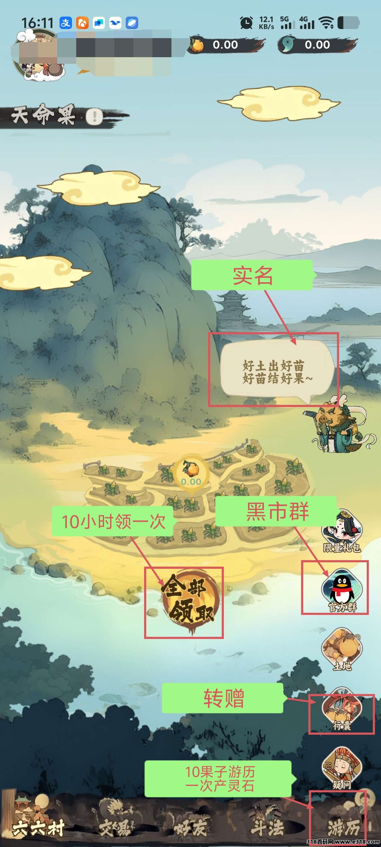 每天用10个天命果参加游历第一难,2小时后之后获得1灵玉,灵玉可交易可转增换米,目前1灵玉=1米。