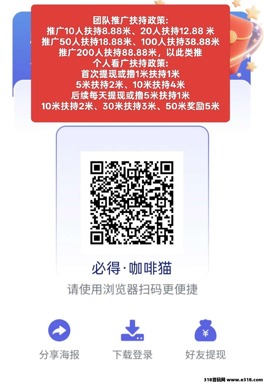 〖必得猫〗 首码,零撸广告,不养机收益高,对接团队,大放水