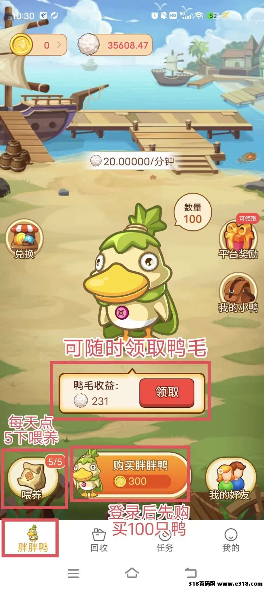 微信登录送3万金币,购买100只鸭