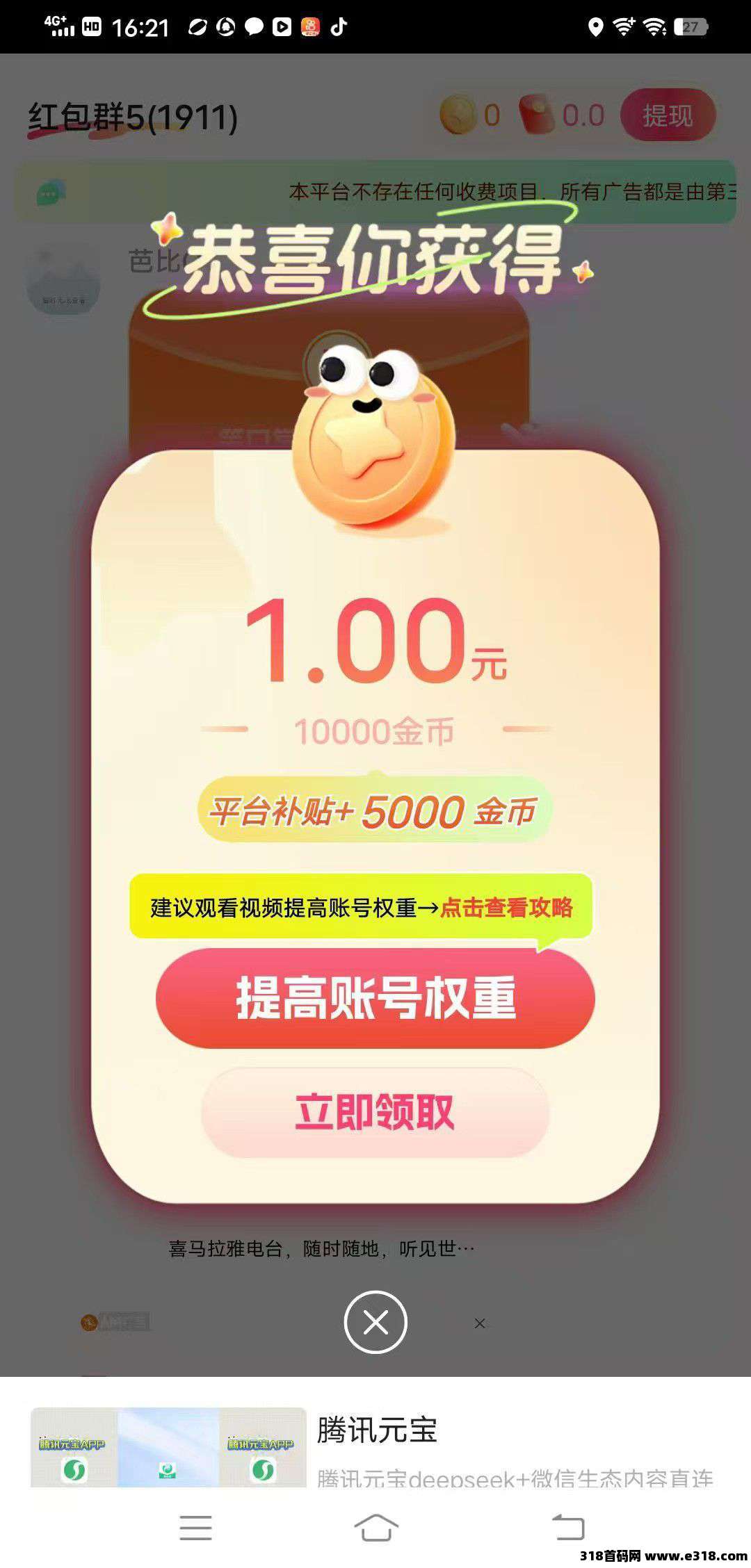 看广告得金币红包1000-10000金币