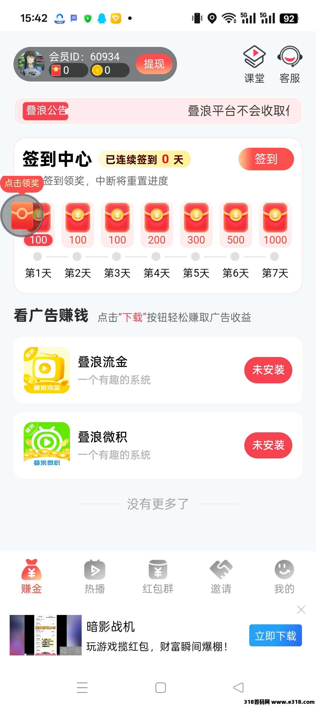 【叠浪】首码,零撸广告赚,保底收益高团队模式放水中,撸包看广告。邀请日入百米,无限叠包,顶包15米,满1元起提