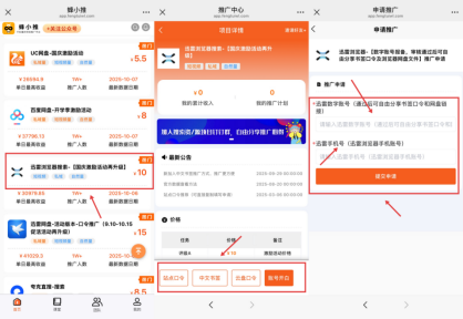 学会了软植入还不够,在这之前我们还要通过蜂小推来获取推广资格,过程也很简单,通过蜂小推公众号下载app完成账号注册,在首页找到迅雷浏览器项目后即可进行资格申请。审核通过就可以进行推广啦!