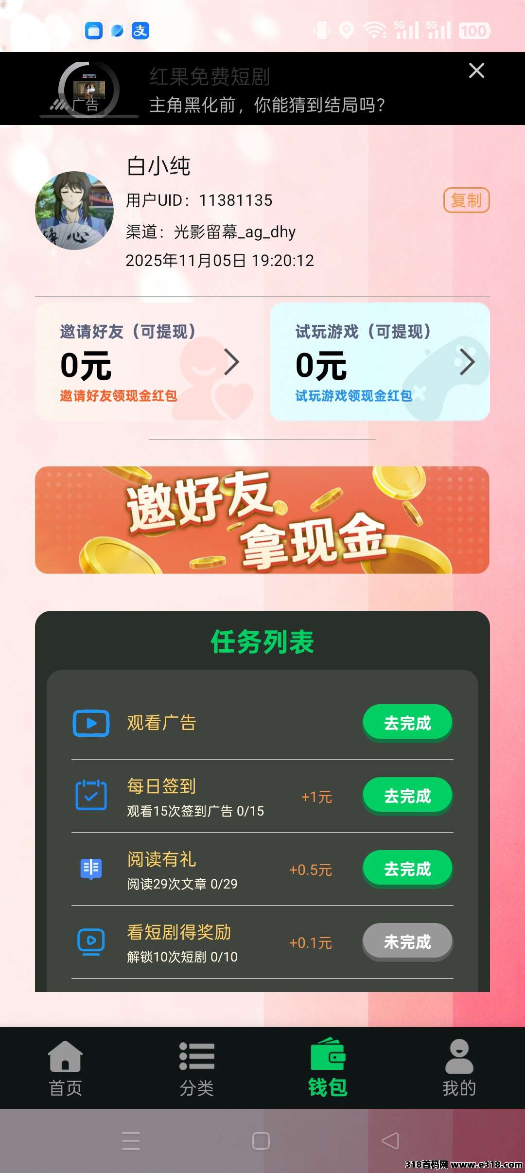 【光影留幕】保底收益高,广告赚+阅读赚,团队模式,邀请日入过百,用户收益高:每日登录任务保底6.6元,看剧看广告还能额外赚!
