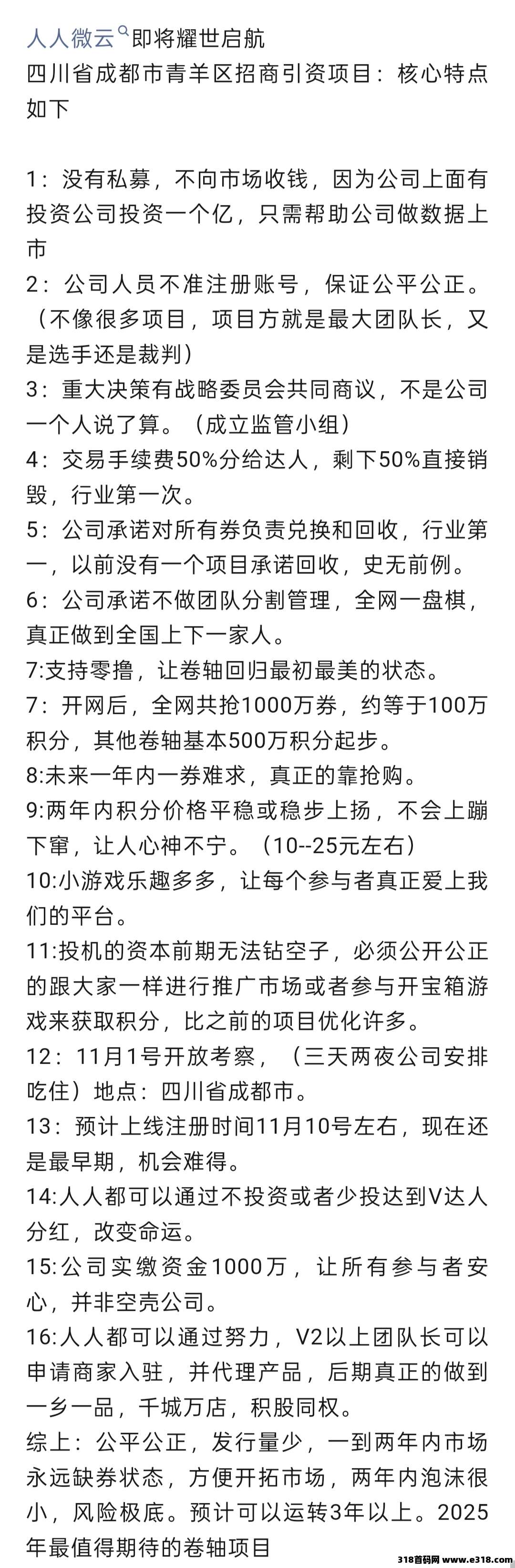 | 免责声明:合作之前建议签订合同,318首码网作为信息共享平台无法对信息的真实性及准确性做出判断,不承担任何财产损失和法律责任,若您不同意该提示,请关闭网页且不要在本站拓展任何合作,否则造成的任何损失由您个人承担。 | |
