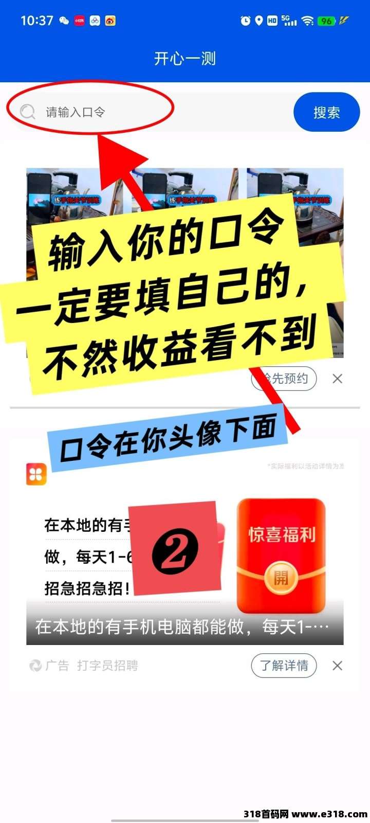 打开广告包体后,一定要填写自己的口令