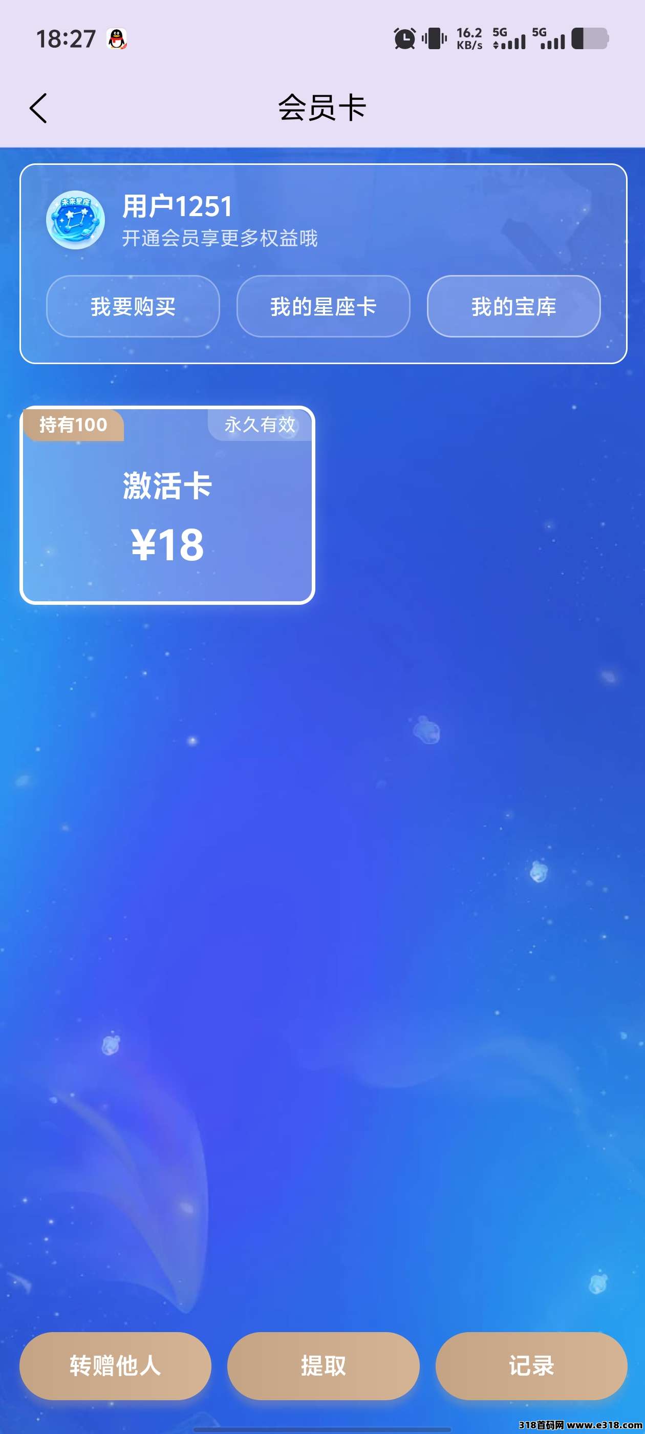 1张激活卡18元一张一次持有享零撸永久收益。