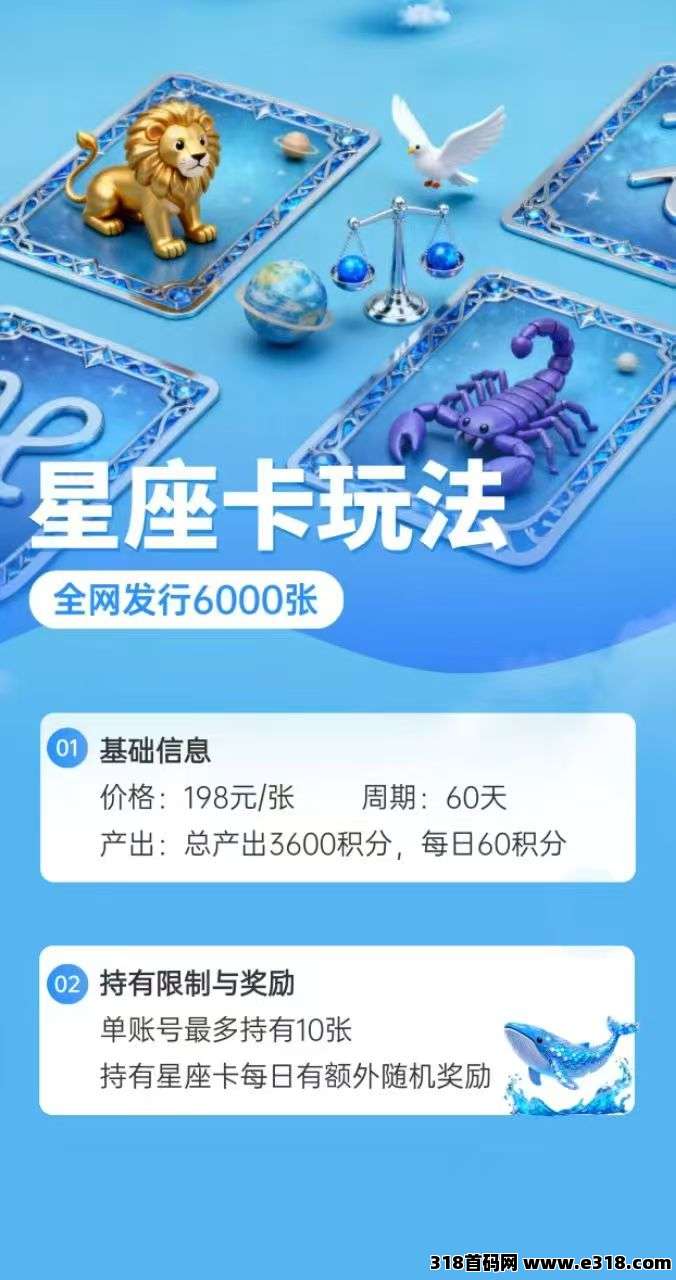 2.198星座卡,168拿卡扶持30
