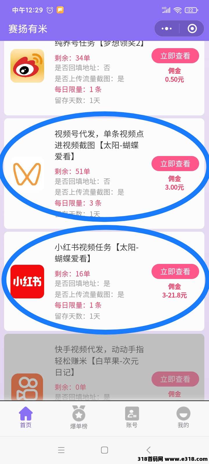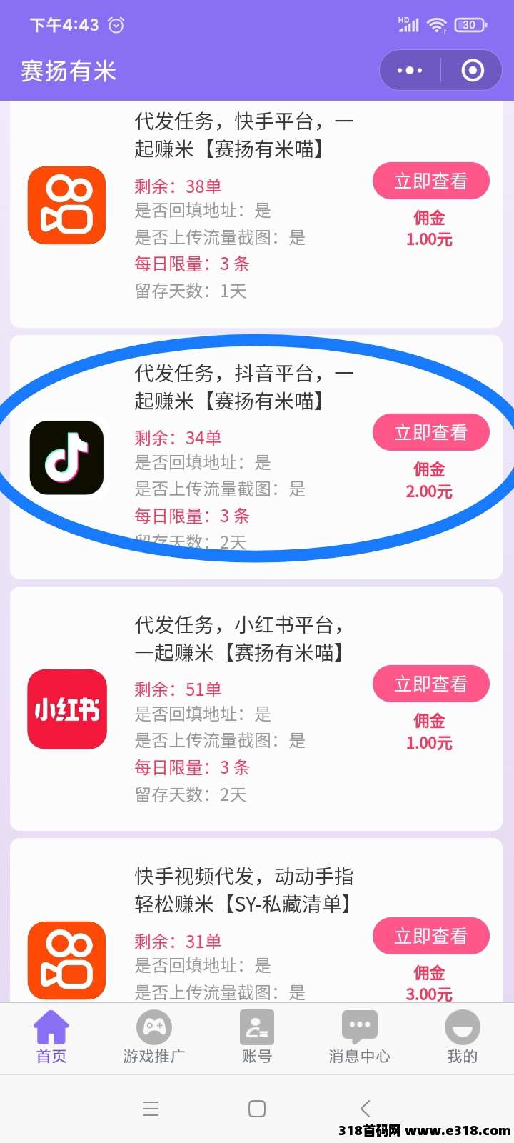 新出赛扬有赚,视频代发一次保底3到10米,领取视频,一键发布即可, 涵盖各大短视频,抖音、快手、小红书,视频号,视频上热门还有额外奖励,速度上车致富。