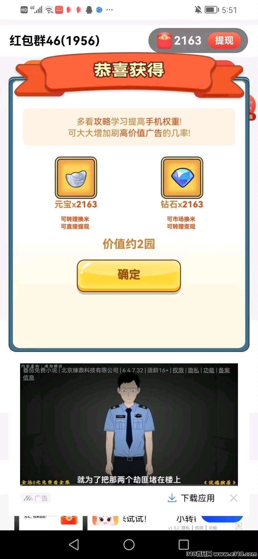 下载子软件看广告得元宝和钻石
