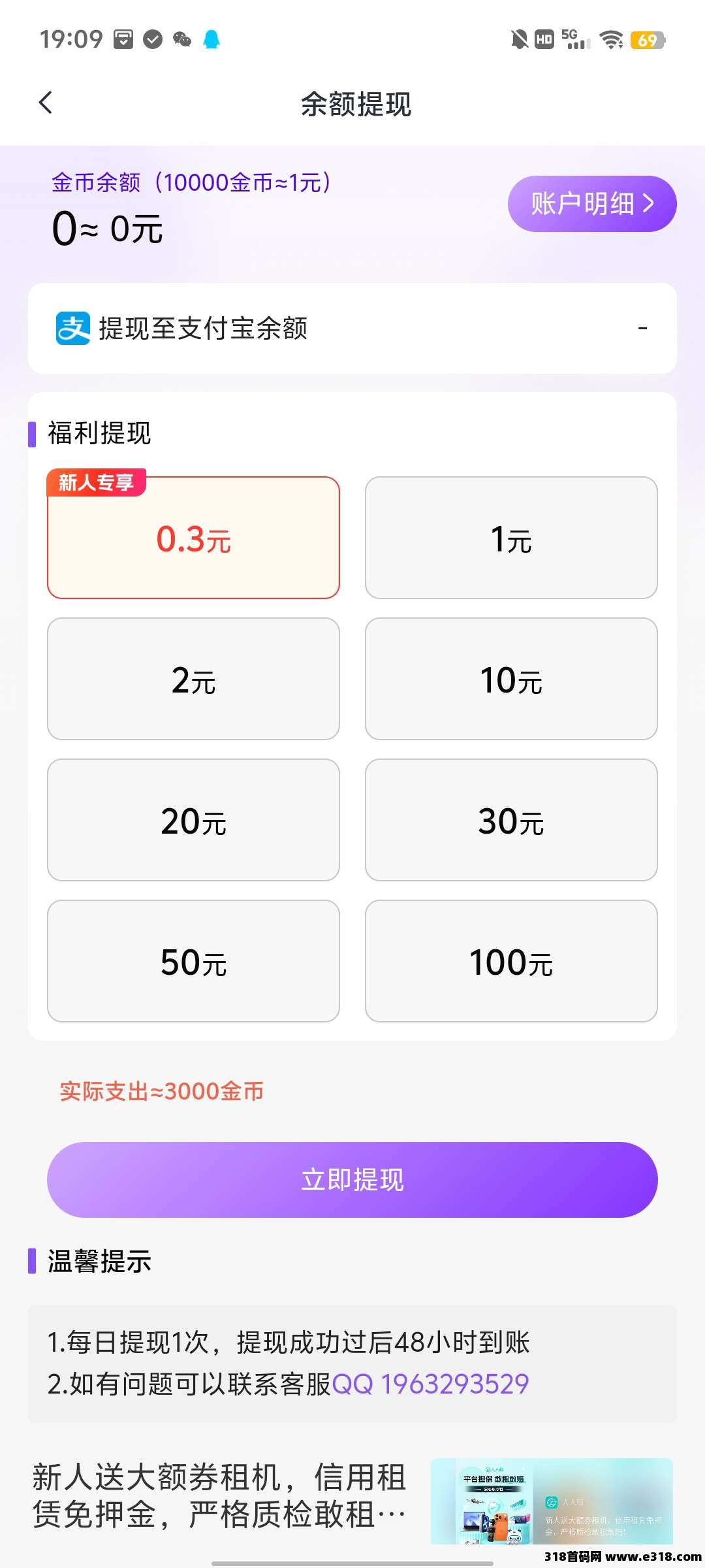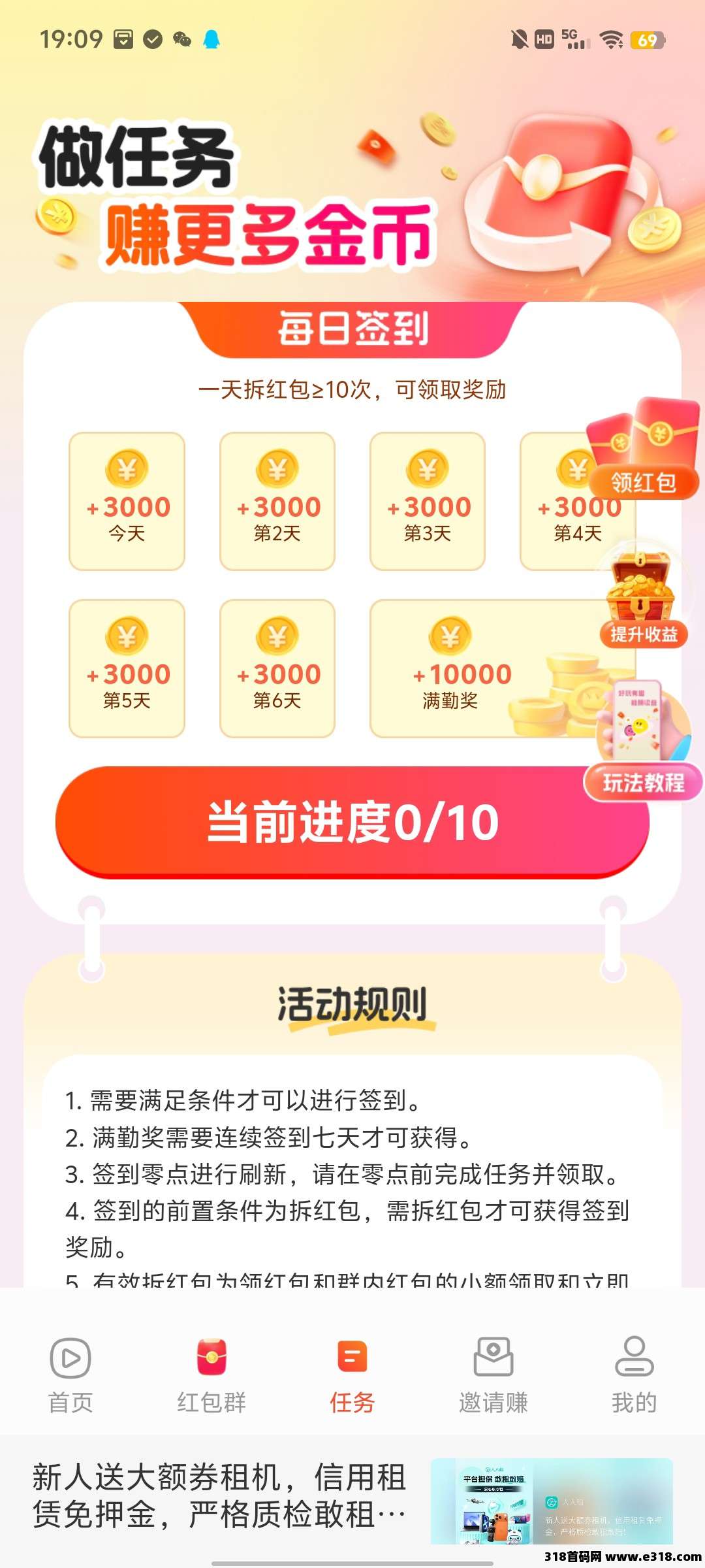 1万金币=1米,0.3秒提,上线放水中,单包5毛,无限撸,团长无限裂变,推广30人可开团