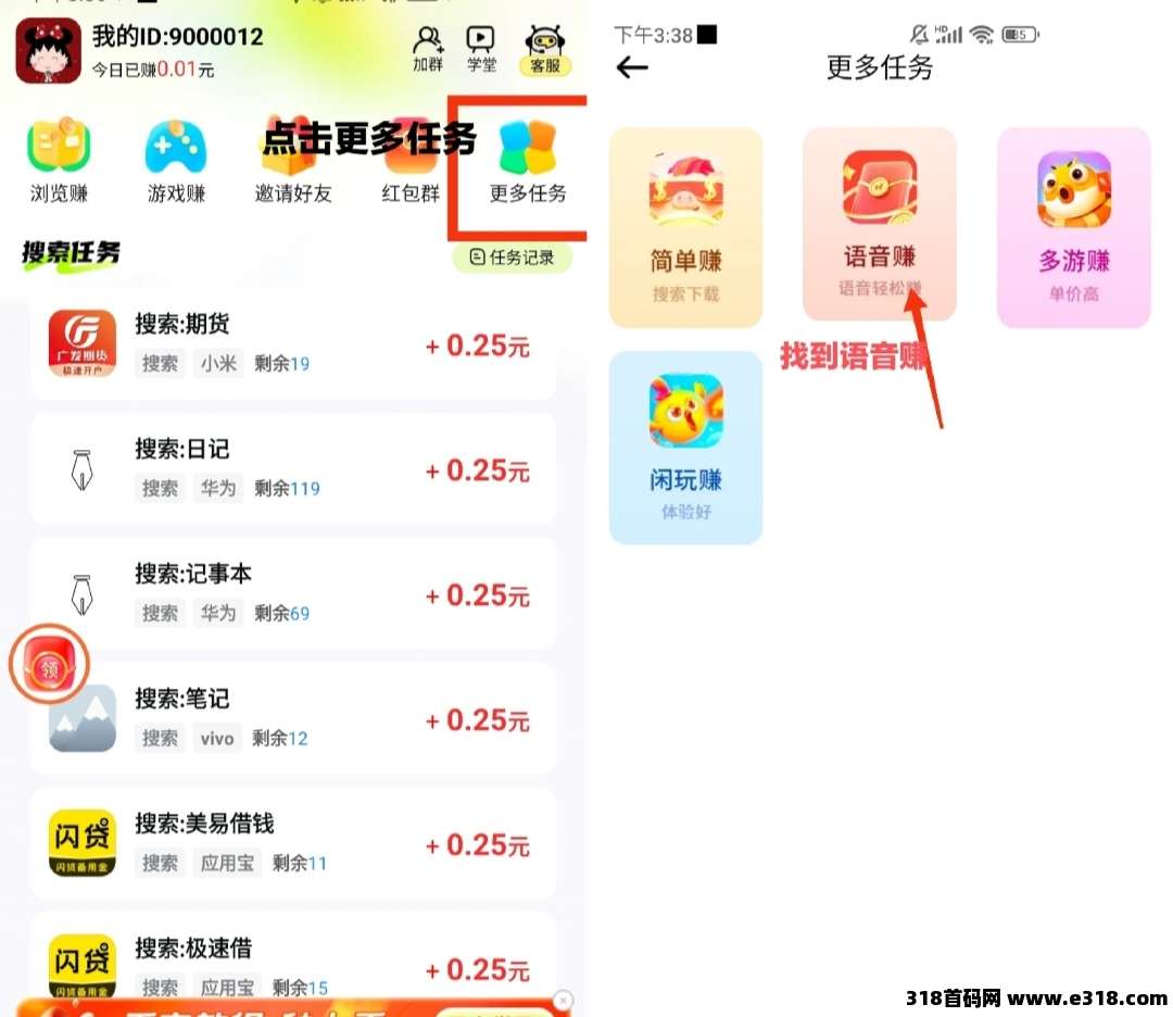 语音赚是听语音红包赚钱的任务,找到语音赚,弹出语音红包,听完语音完成相应的要求即可获得奖励: