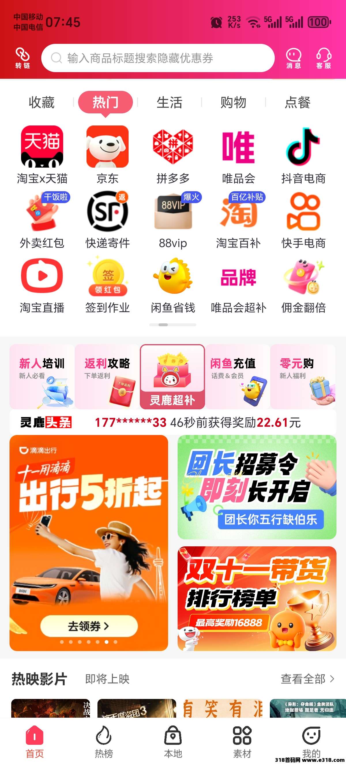 灵鹿宝盒返利优惠几乎涵盖全网吃喝玩乐衣食住行,包括淘宝、京东、拼多多、唯品会、抖音、快手、饿了么、美团、打车、打折加油、5折肯德基、麦当劳、影视会员等等全都有优惠!