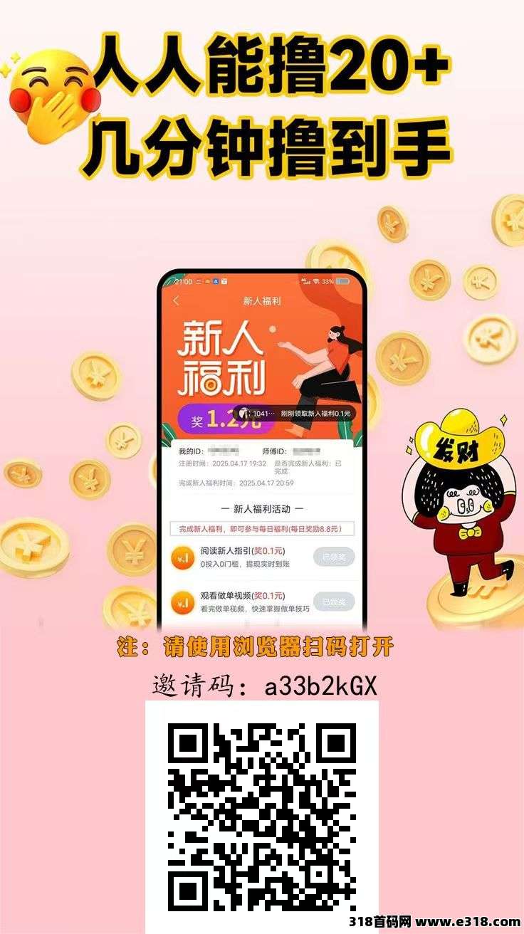 注册下载,VX登录,选择首页第一个小红书评论,完成即可领取1米,直接提现,秒到。