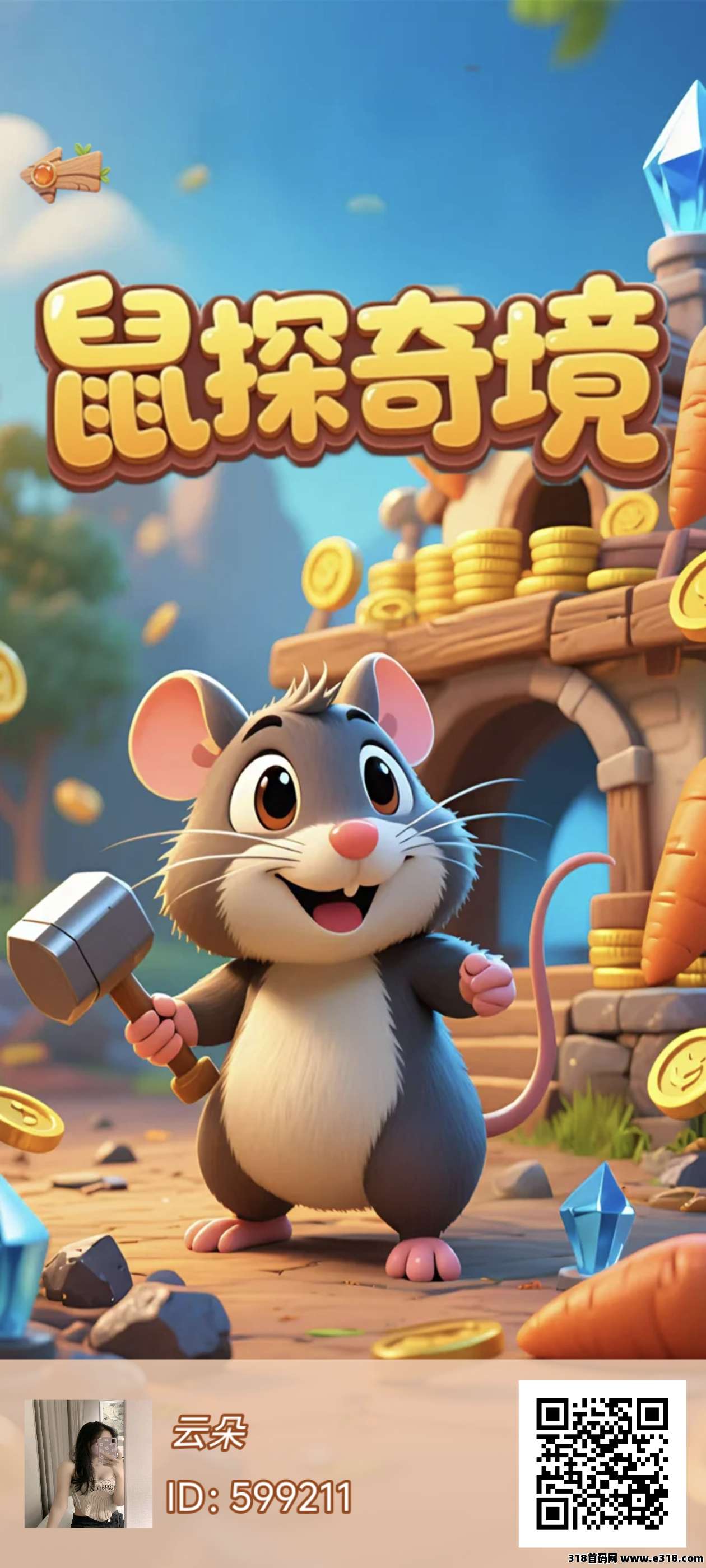 全新零撸游戏【鼠探奇境】刚上线,完成注册并填写个人信息及进行实名认证后,玩家将获得一份包含10个萝卜的任务包。每天完成5个广告任务,即可获得1个萝卜,初始每个萝卜价值2米。