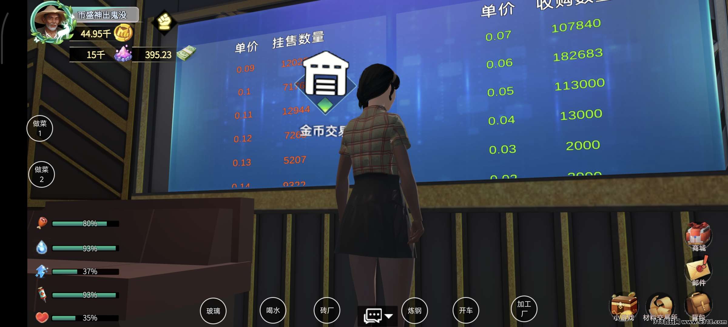 然后发现商机:倒卖物资、回收作物、开设工厂、经营商铺……