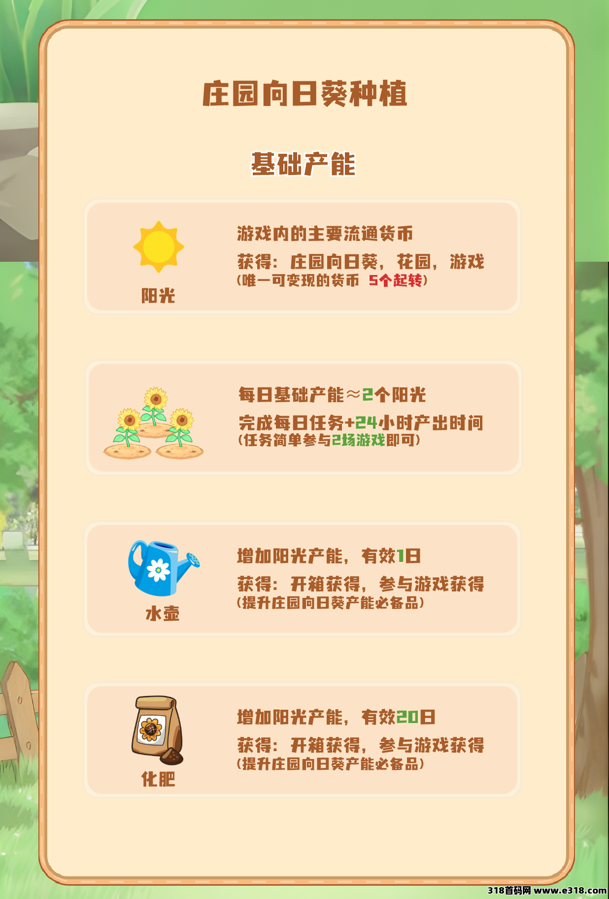 基础玩家 每日2个阳光,5个阳光就可以变现。