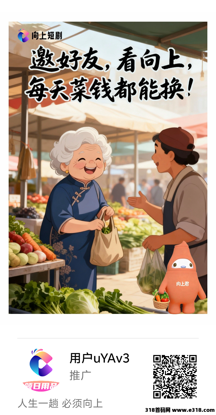 分享 = 赚钱!向上短剧邀请 1 人注册领补贴,好友领福利越多你赚越多,0 成本裂变,补贴无上限~
