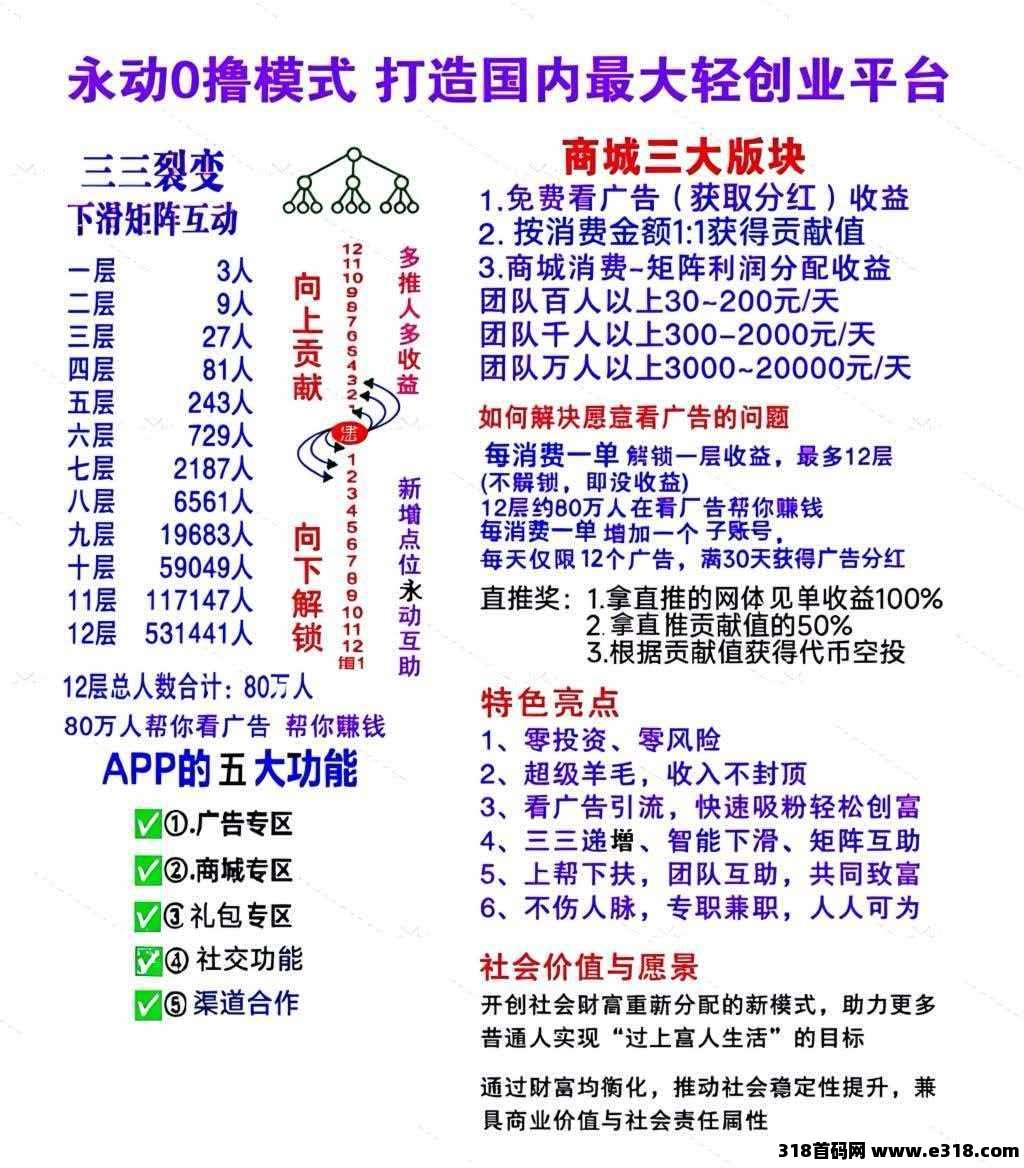 每消费一单就解一层收益,最多12层(每消费一单就增加一个子账号,每天仅限12个广告,30天获得广告**