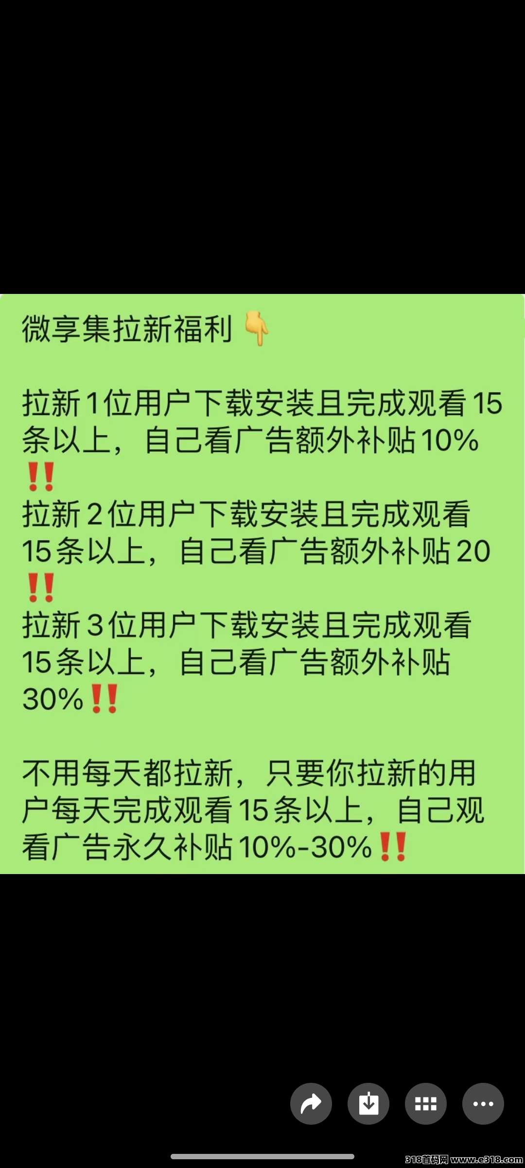 4. 轻松推荐赚涌琻:微享集不仅提供个人任务赚米,还有邀好友赚钱的机会。每推荐一个朋友加入,您就能从他/她的活动中获得一定的推荐奖励,并且收溢是持续的,不受时间限制。