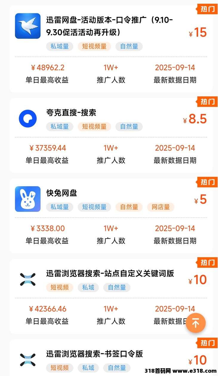 蜂小推这个平台的业务非常专注,从几年前上线到现在一直都是做网盘拉新,上线的网盘非常的多,价格都是行业置顶价格,每个人免费注册就可以推广。