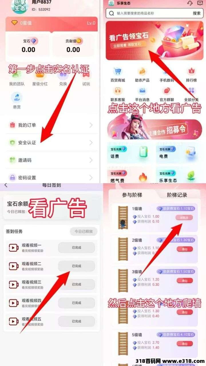 乐享生态预计12.3号上线,具体玩法:零撸每天看5个广告获得1宝石,1宝石去第二天获得1.1。注册说是一机一号一ip买卖规则:3个宝石换一个贡献值即可出1个宝石,开盘价1.5没有黑市