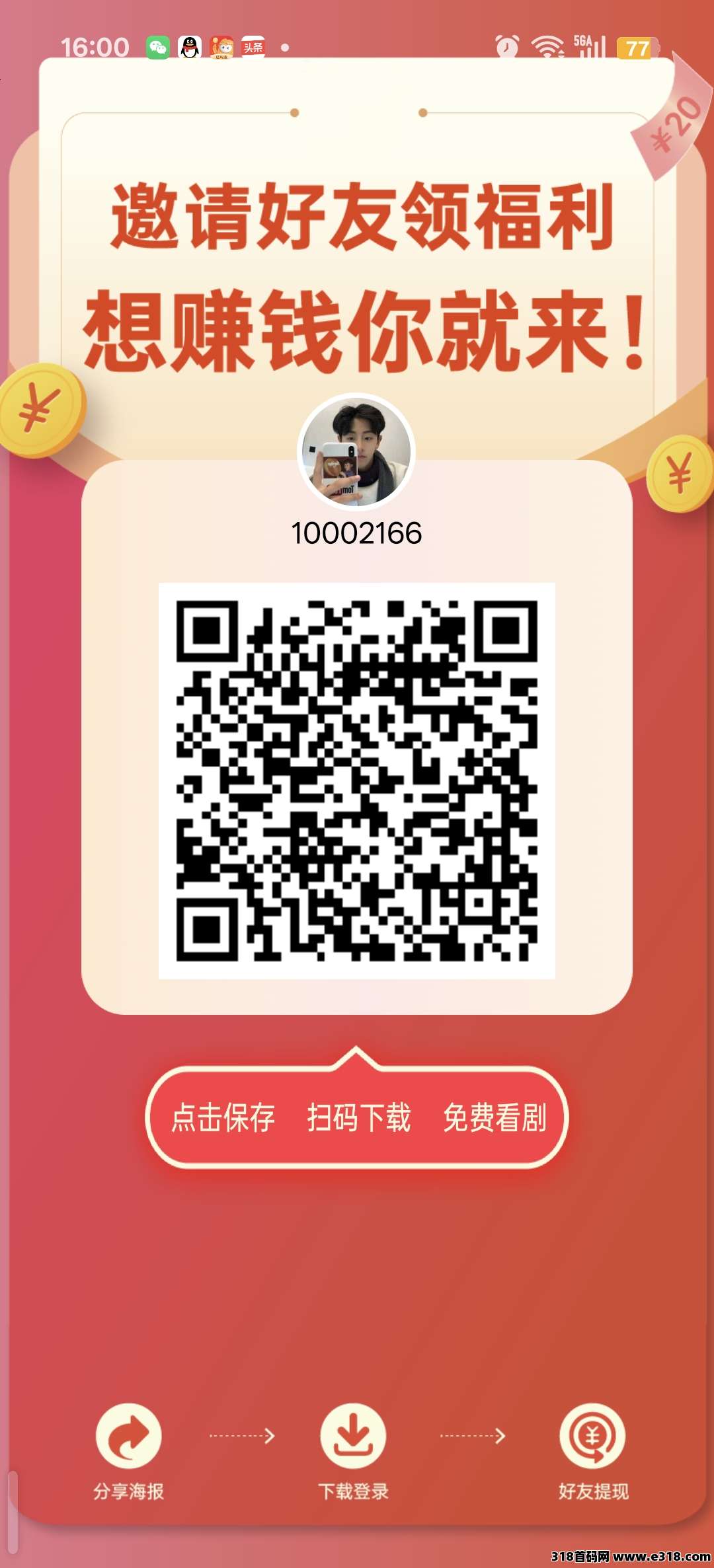 看任意广告或者解锁短剧都有红包