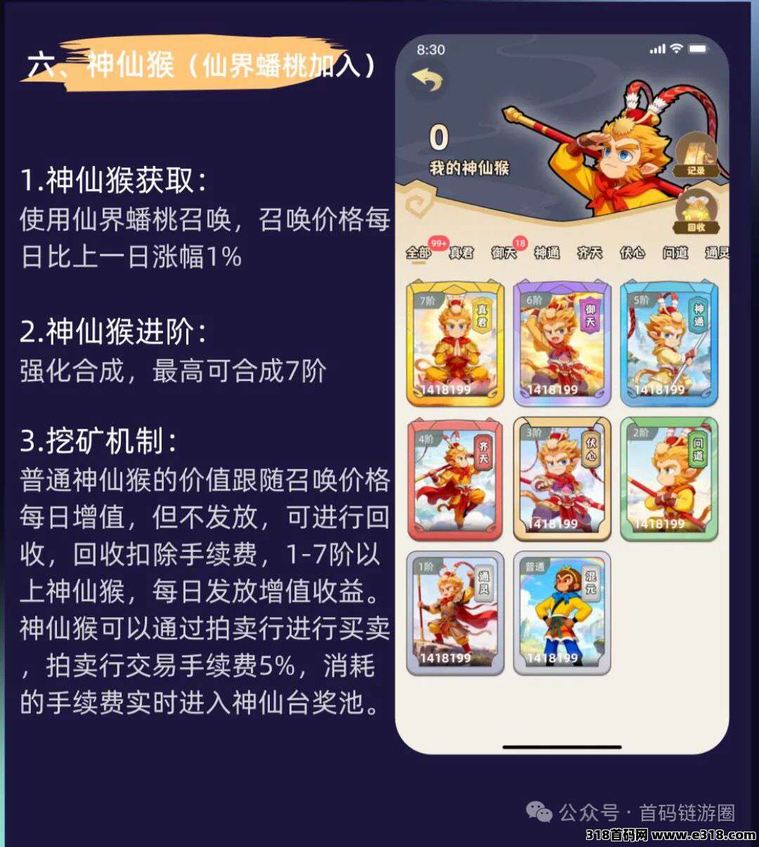 祈福6%机率祈福到仙界蟠桃→可高价进行拍卖或合成三级猴卡永久享受平台交易手续**!