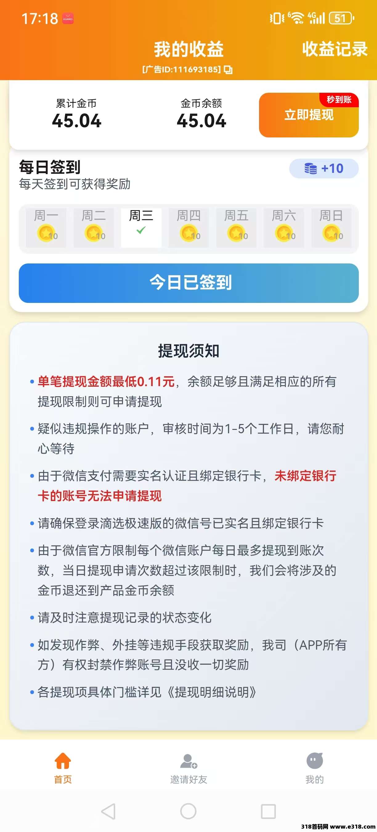 最新出的【水墨年华】,0撸,保底收益,每天签到,打卡,保底收益3-10