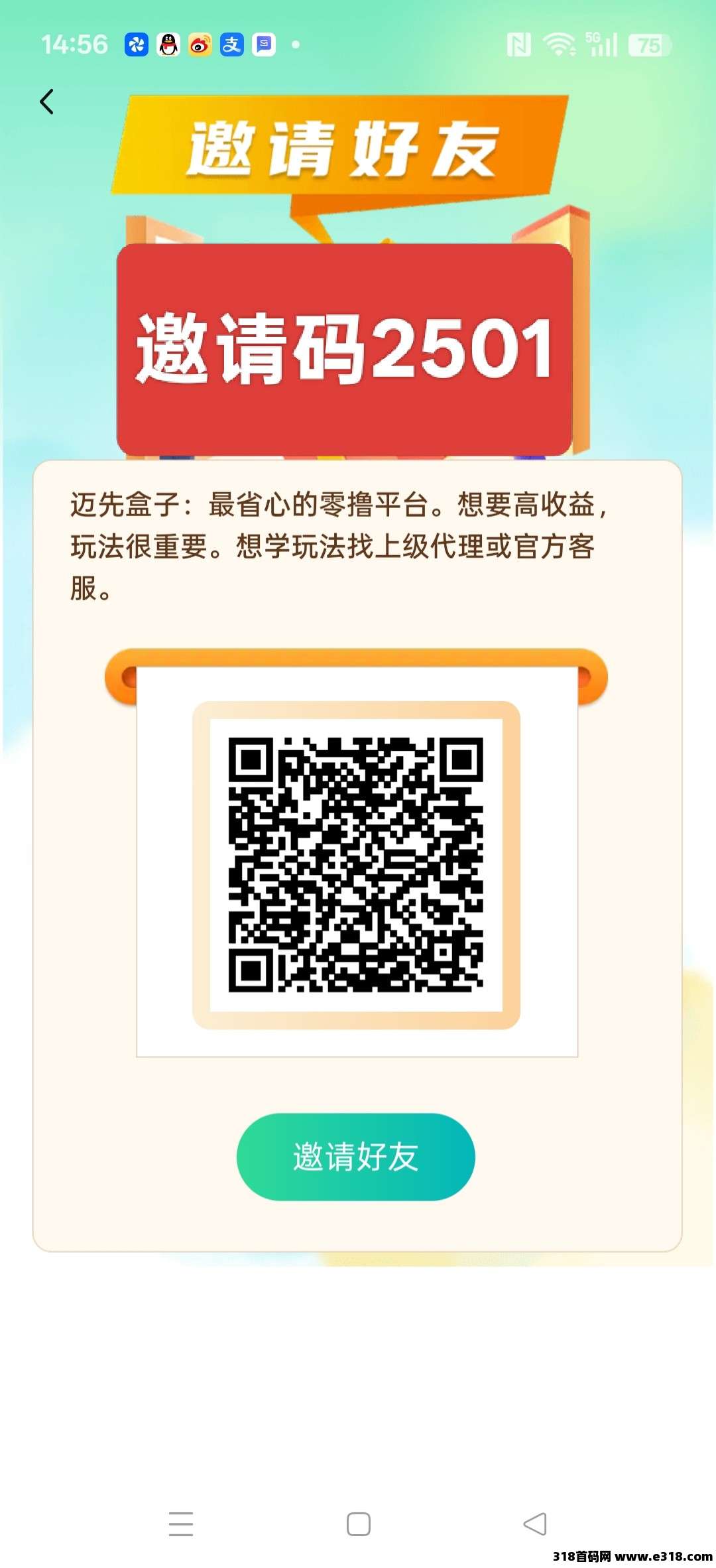 迈先盒子,零撸广告赚,保底收益高,团队模式,邀日入百米,