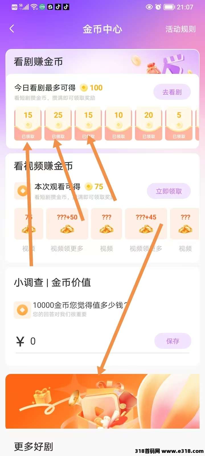 首个微短剧全域商业平台,零撸每天看三分钟短剧领取100金币既释放0.4个圆力值,1个圆力值卖30元,一个月撸到360元,可以多搞几个账号来撸(最好是上鲤包复利增值,不要着急卖掉)