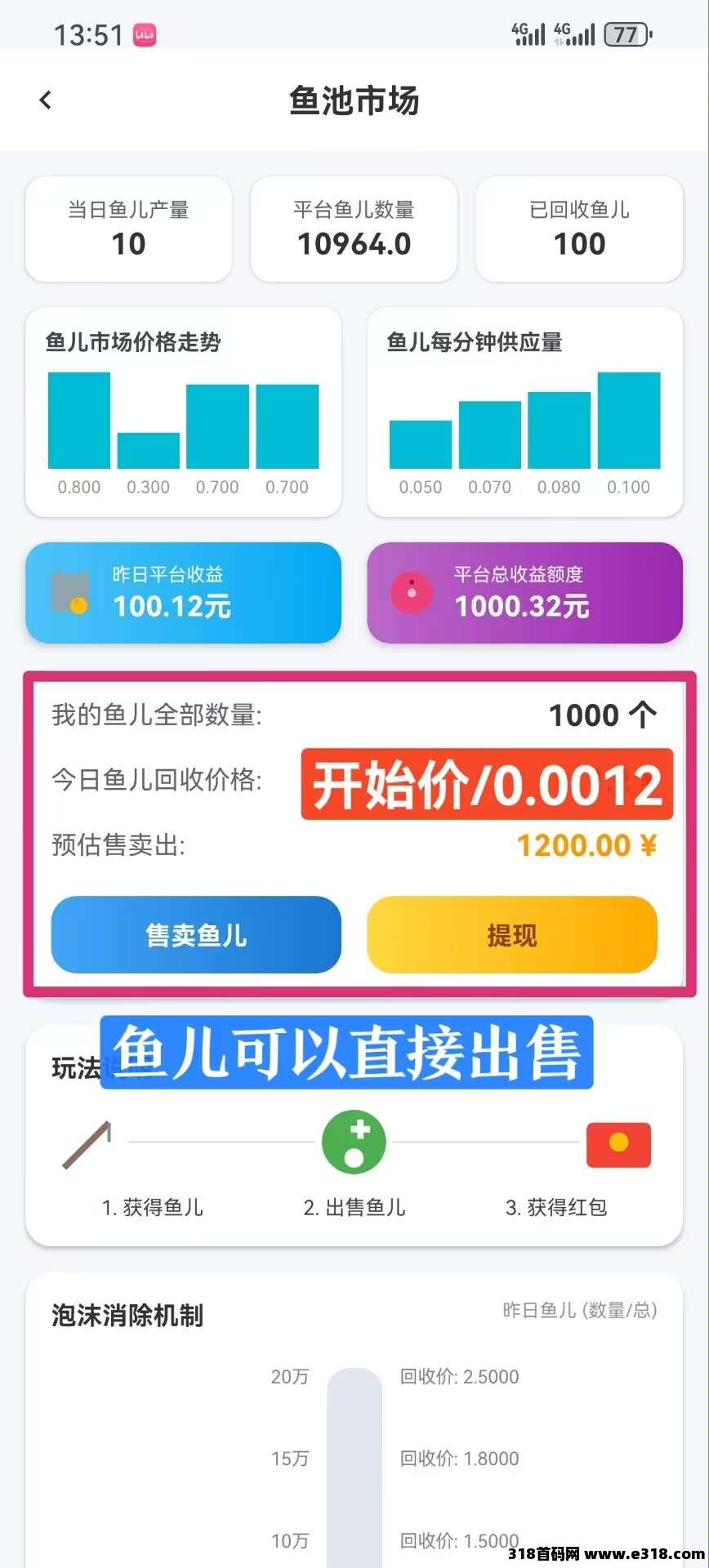 内侧福利注册送10鱼竿,鱼竿产出小鱼?,一条鱼?目前价值0.0012,官方回收,官方回收