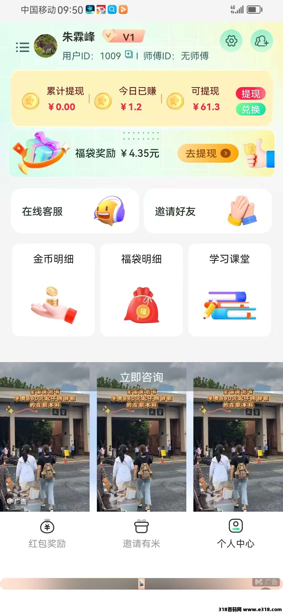 第四步:选择个人中心进行提现