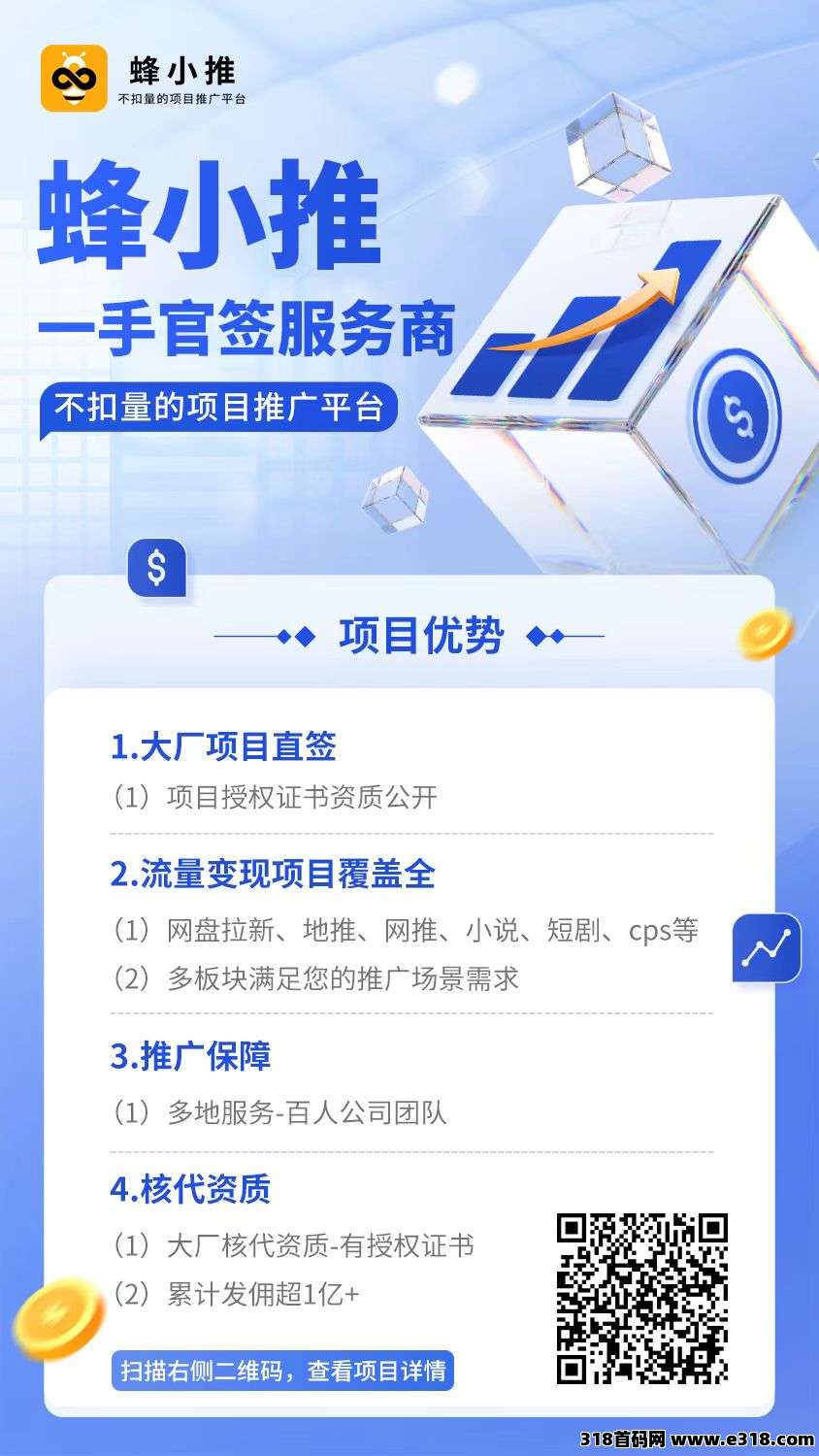 | 免责声明:合作之前建议签订合同,318首码网作为信息共享平台无法对信息的真实性及准确性做出判断,不承担任何财产损失和法律责任,若您不同意该提示,请关闭网页且不要在本站拓展任何合作,否则造成的任何损失由您个人承担。 | |