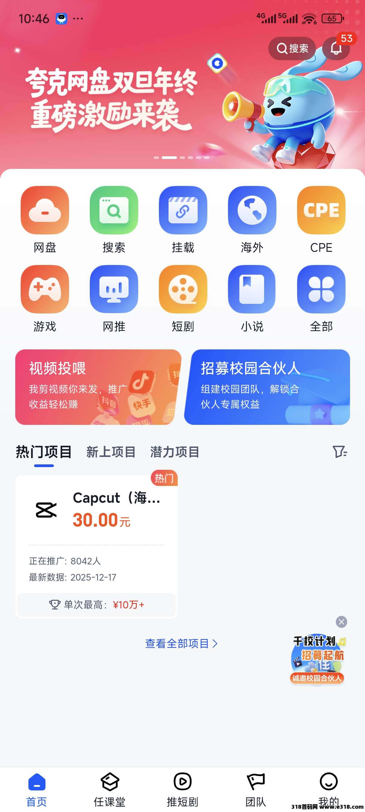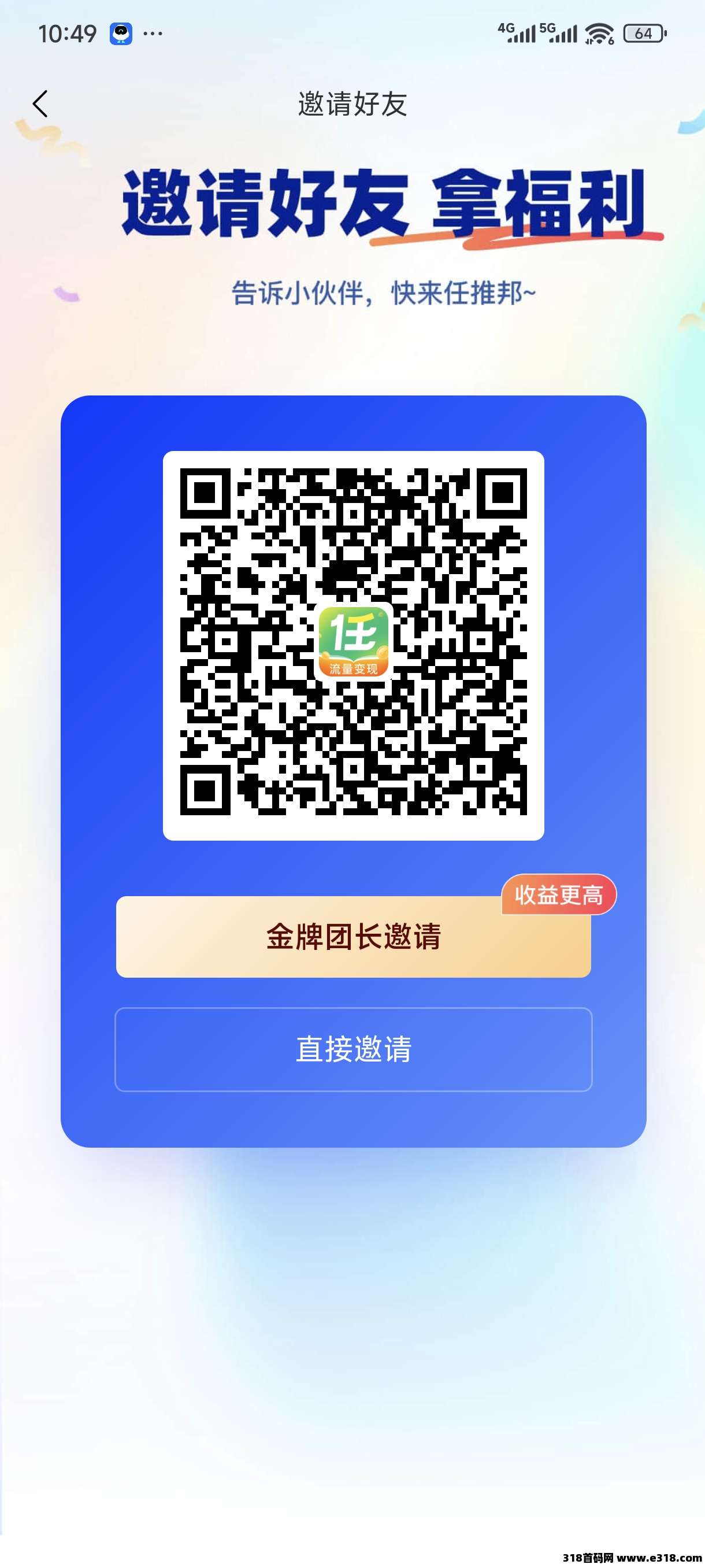 任推邦邀请码是906401注册填写有奖励的任推邦是国内一线的APP推广项目分发和流量变现平台,隶属聚名科技集团(“高新技术”企业、AAA重合同守信用企业、安徽互联网协会副会长单位),目前是中国移动、中国联通、阿里、字节、百度、迅雷、美团等品牌一级用户增长服务商,已入驻各类自媒体达人、网推渠道超90万,累计结算推广金超2亿元。
