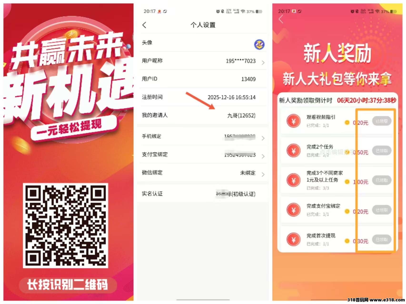 第三步:首页新人福利全部完成并提现一次