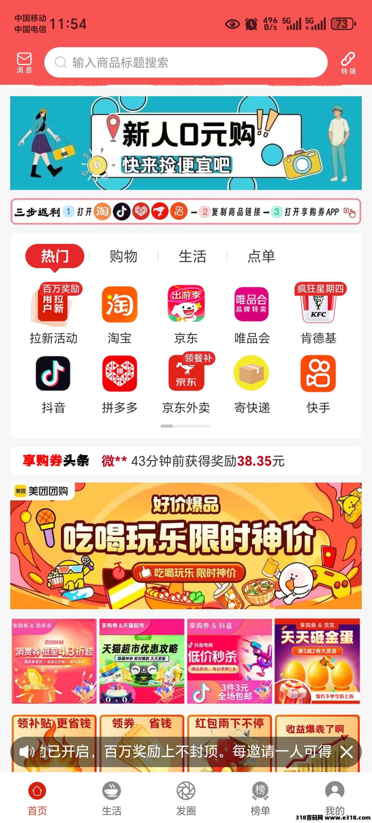 《享购券》集成了淘宝、天猫、京东、拼多多等主流电商平台以及饿了么、美团外卖等外卖平台的数据,提供全面的优惠信息!