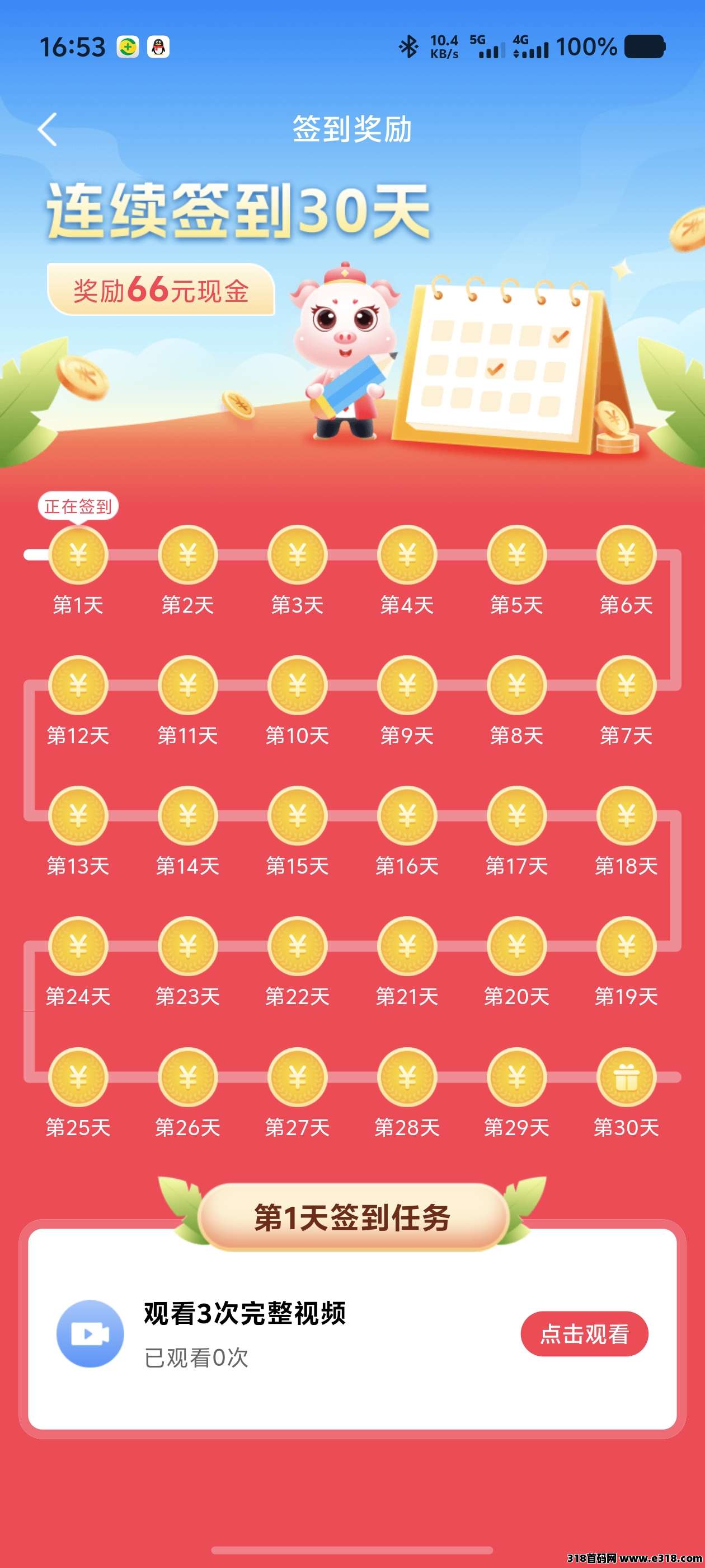 完成签到挑战最高奖励66元