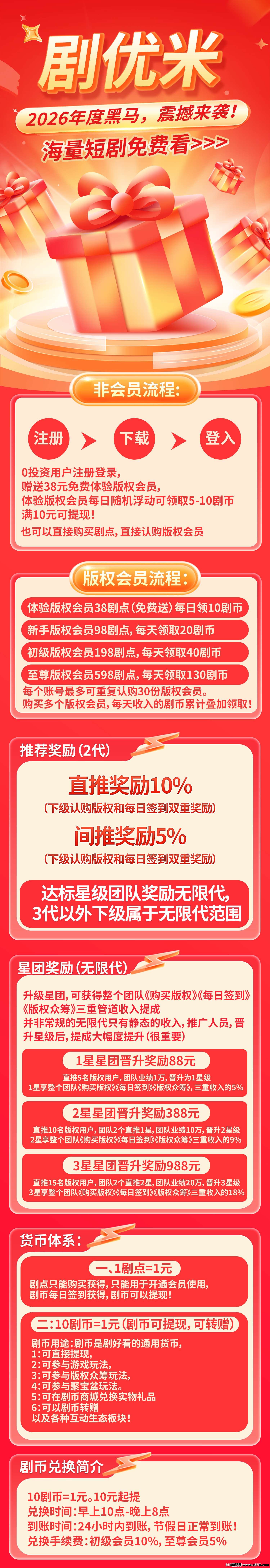 剧优米0撸注册送38会员,每日1分钟可得0.5-1元,满10提。