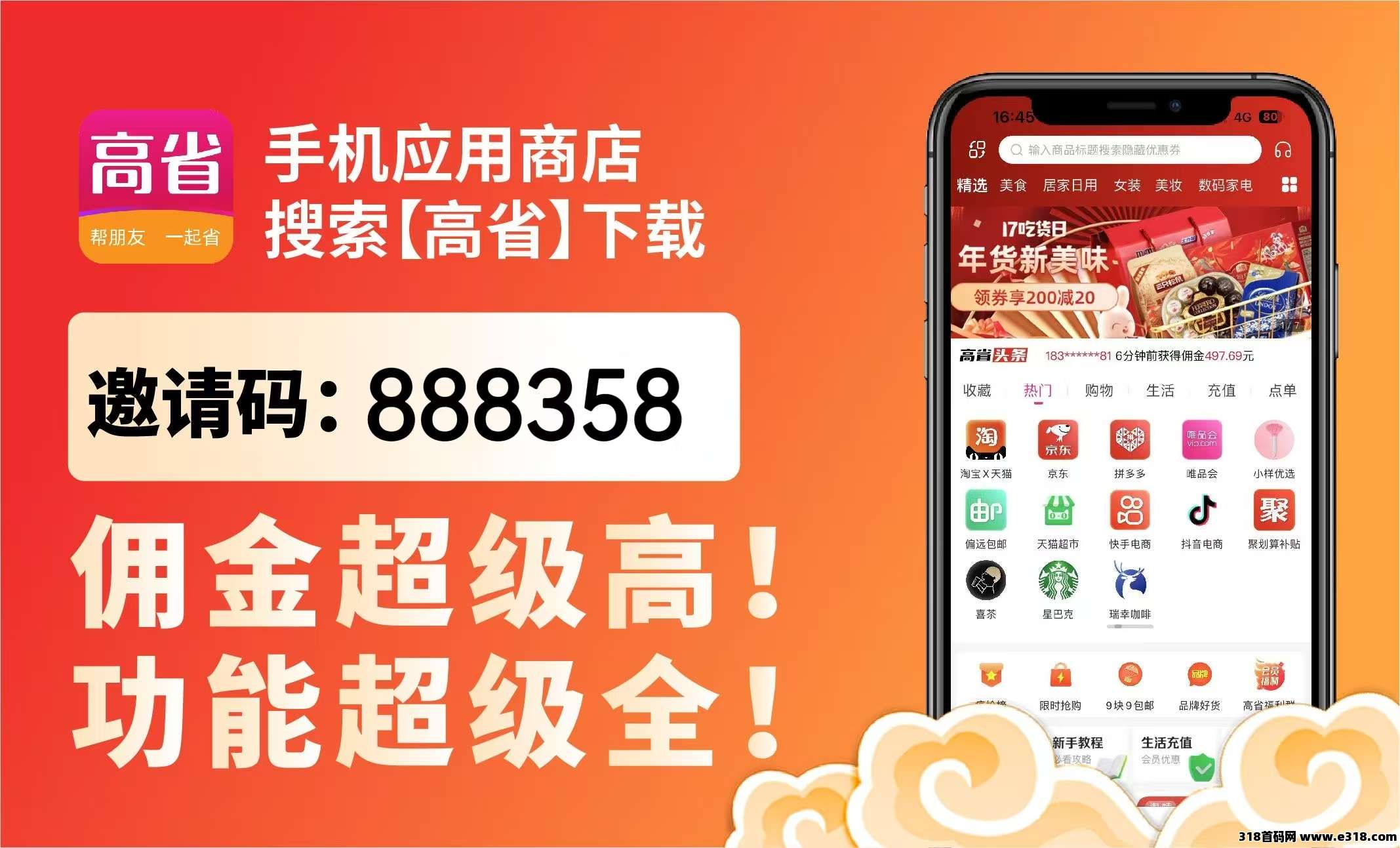 综合来看,高省绝对是2026年最值得推荐的赚钱App之一,不管你是想自用省钱,还是想靠分享赚钱,都能满足你的需求。而且它正规可靠,零投资、零风险,新手也能快速上手。感兴趣的朋友真的可以试试,直接在应用商店搜索【高省】下载,注册的时候填写邀请码:888358,就能直接升级2皇冠会员,拿到万元引流大礼包和一对一辅导。现在开始做,说不定过几个月你就能靠它实现零花钱自由,甚至打造属于自己的赚钱团队,让收入再上一个台阶。别再每天抱着手机刷短视频浪费时间了,不如利用这些时间做点能赚钱的事,积少成多,慢慢你就会发现,自己的钱包越来越鼓,生活也越来越有底气。赶紧行动起来吧!